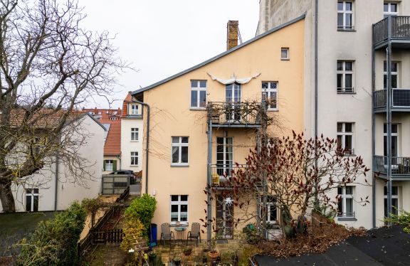 Saniertes Denkmal im Holländerviertel – bezugsfreie Gewerbeeinheit & Dachgeschossmaisonette. Obergeschoss vermietet; mit Balkonoption.