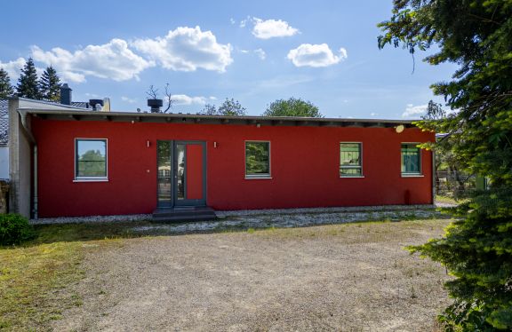 Provisionsfrei: Bezugsfreier energieeffizienter Bungalow mit drei Wohnbereichen und weitem Blick in die Obstgärten