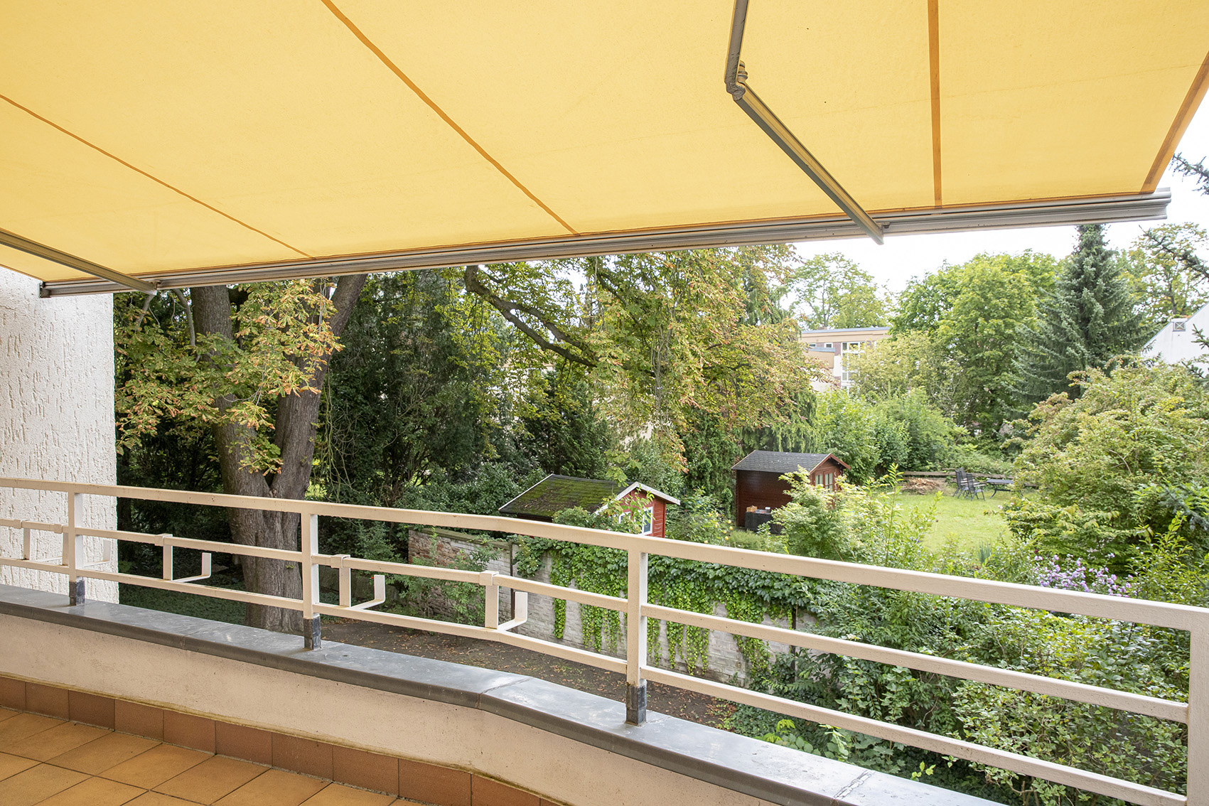 - Süd-West-Balkon mit Bodenfliesen und elektrischer Markise.