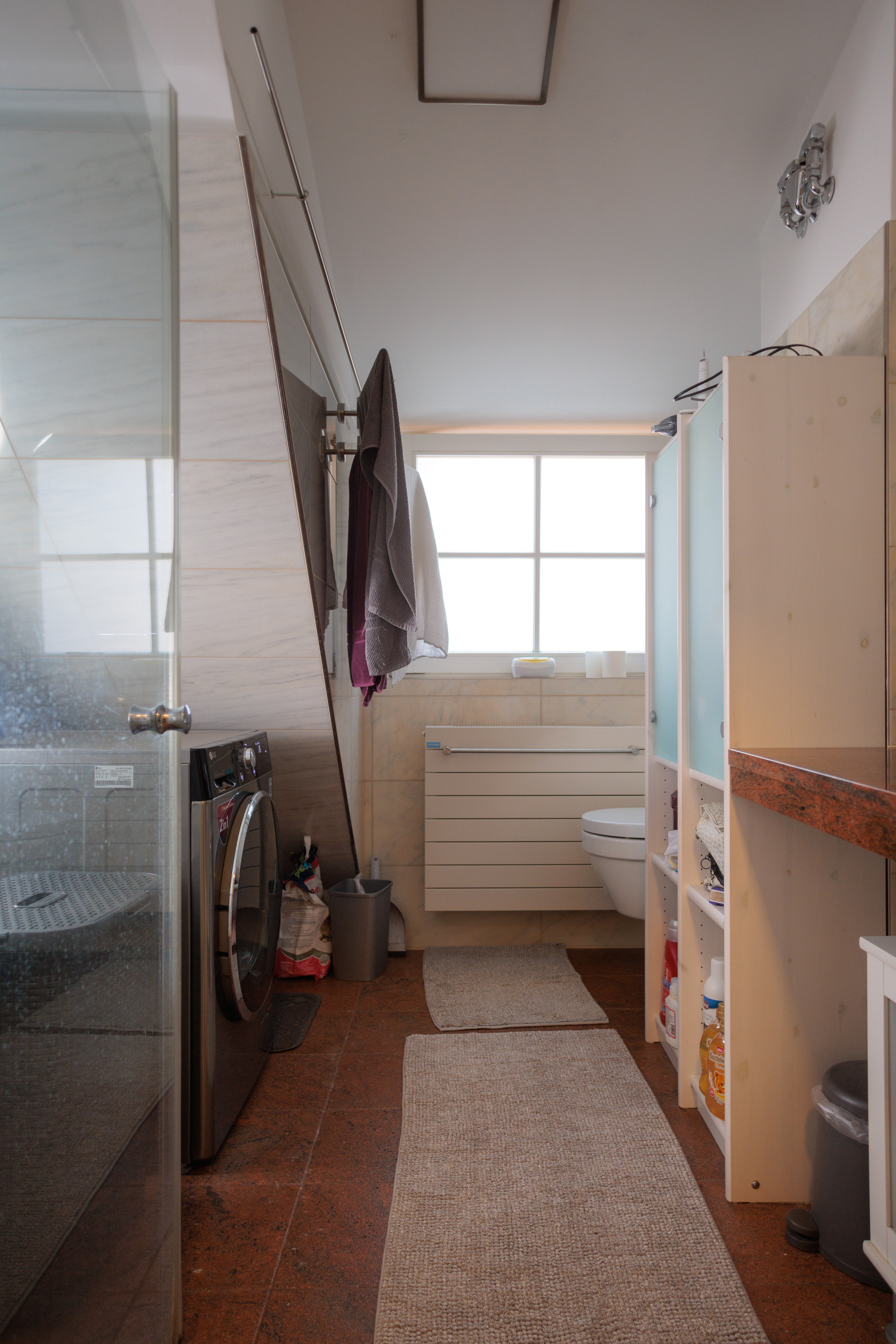 - Bad deckenhoch gefliest.