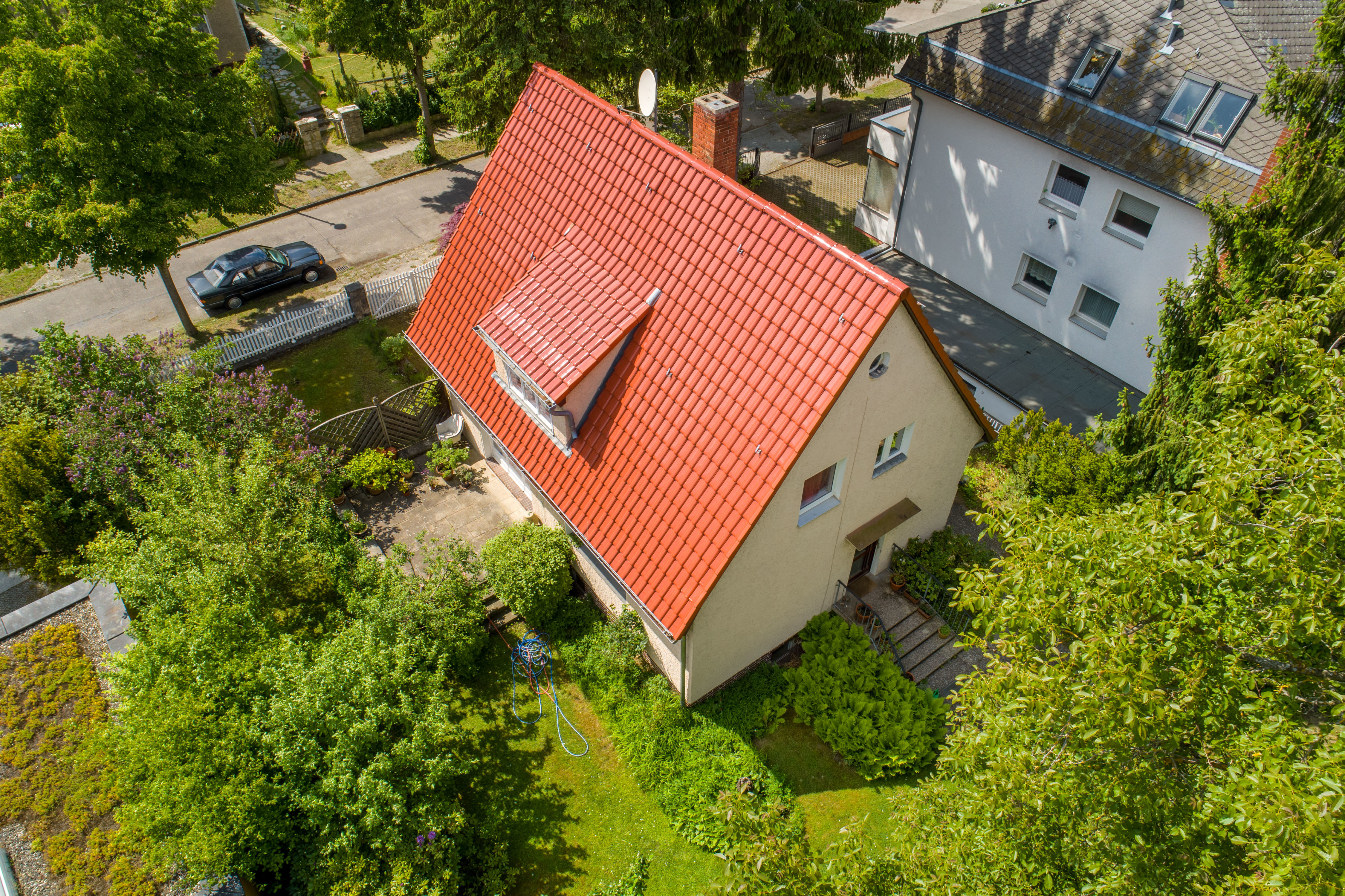 Die Immobilie befindet sich in einer sehr ruhigen und grünen Straße in Berlin-Frohnau, umgeben von Mehrfamilienhäusern mit großen Gartengrundstücken. Der sehr geringe Autoverkehr vor der Haustür trägt zu einem entspannten Wohngefühl bei.