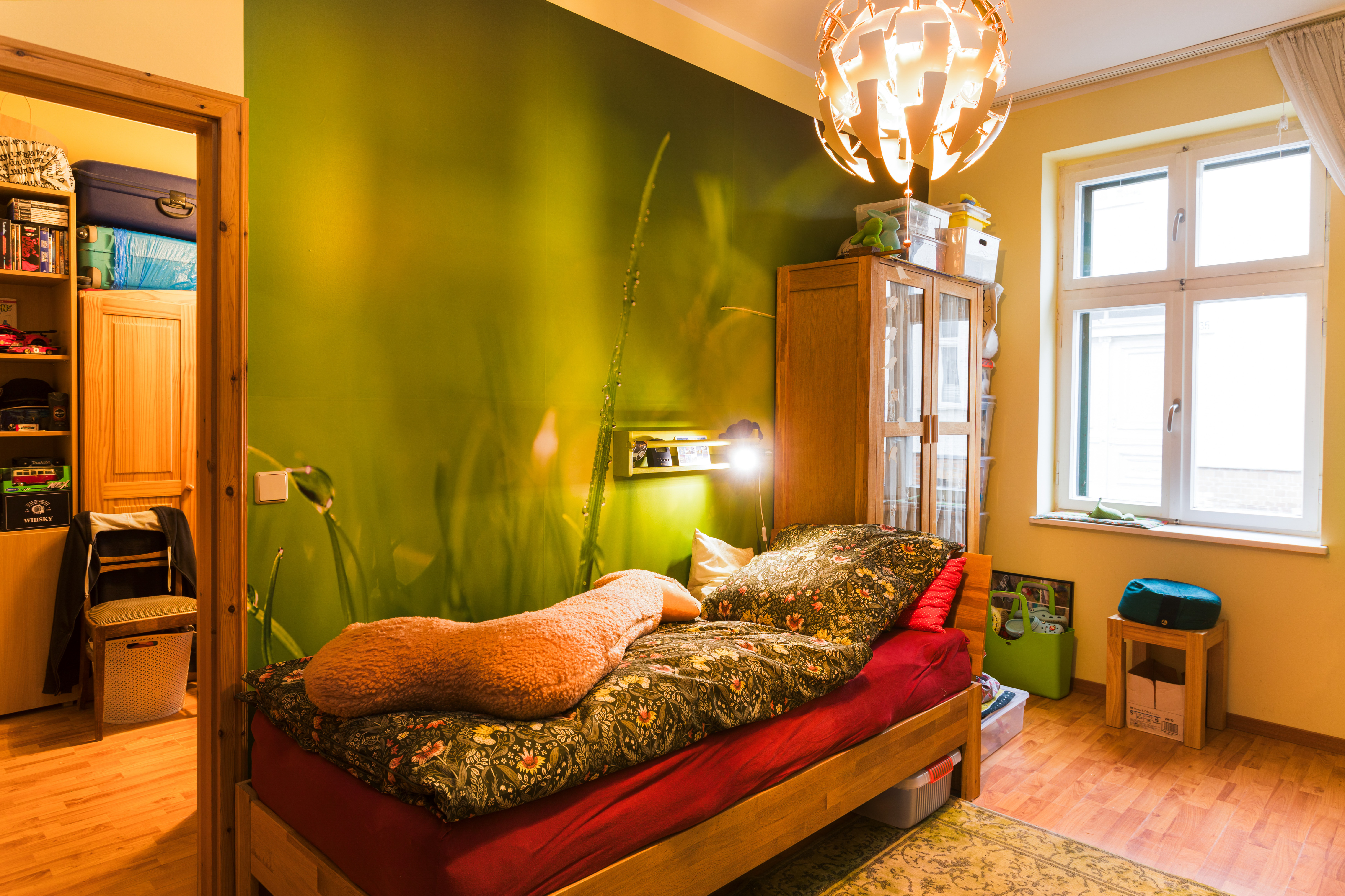 - Hauptzimmer mit Balkonzugang: Das größte Zimmer bietet Zugang zum Balkon mit traumhaftem Blick ins Grüne – perfekt für ein sonniges Frühstück oder entspannte Abende.