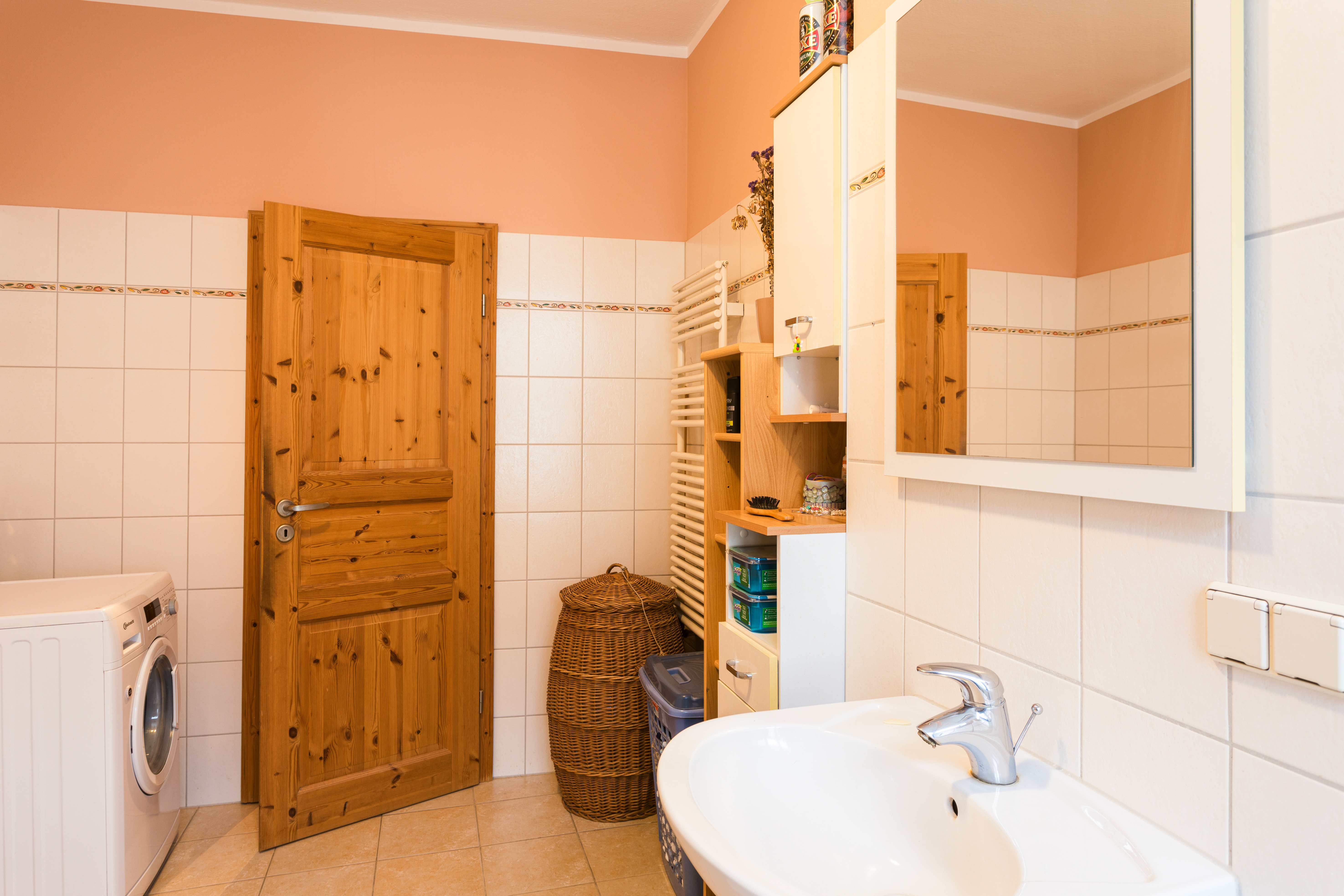 - Handtuchheizkörper und Waschmaschinenanschlüsse in jedem Bad.
