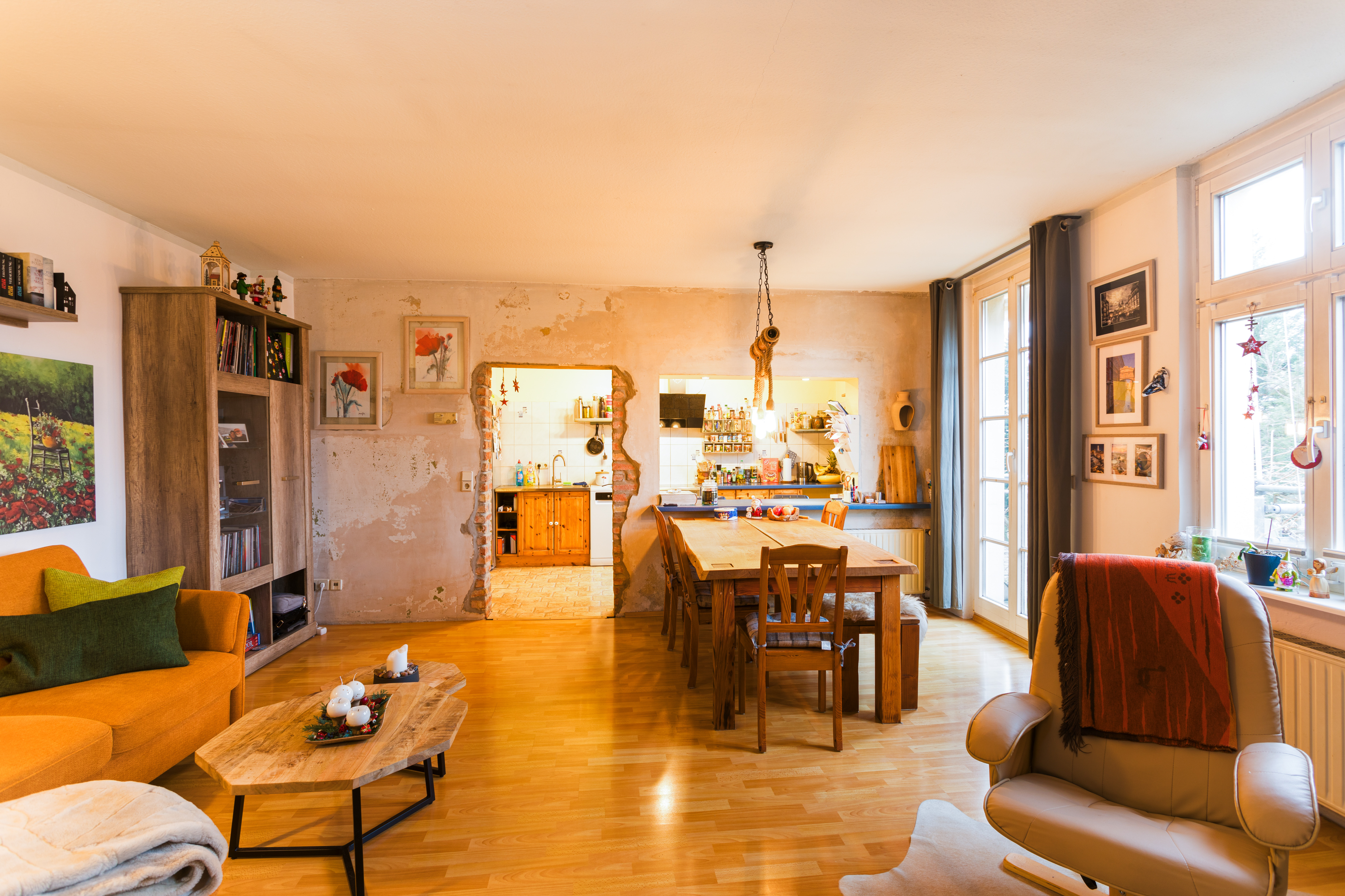 - Durch die vorhandenen Verbindungstüren lassen sich die Räume bei Bedarf jedoch auch anders anordnen, z.B. für ein großes Wohn- und Esszimmer.