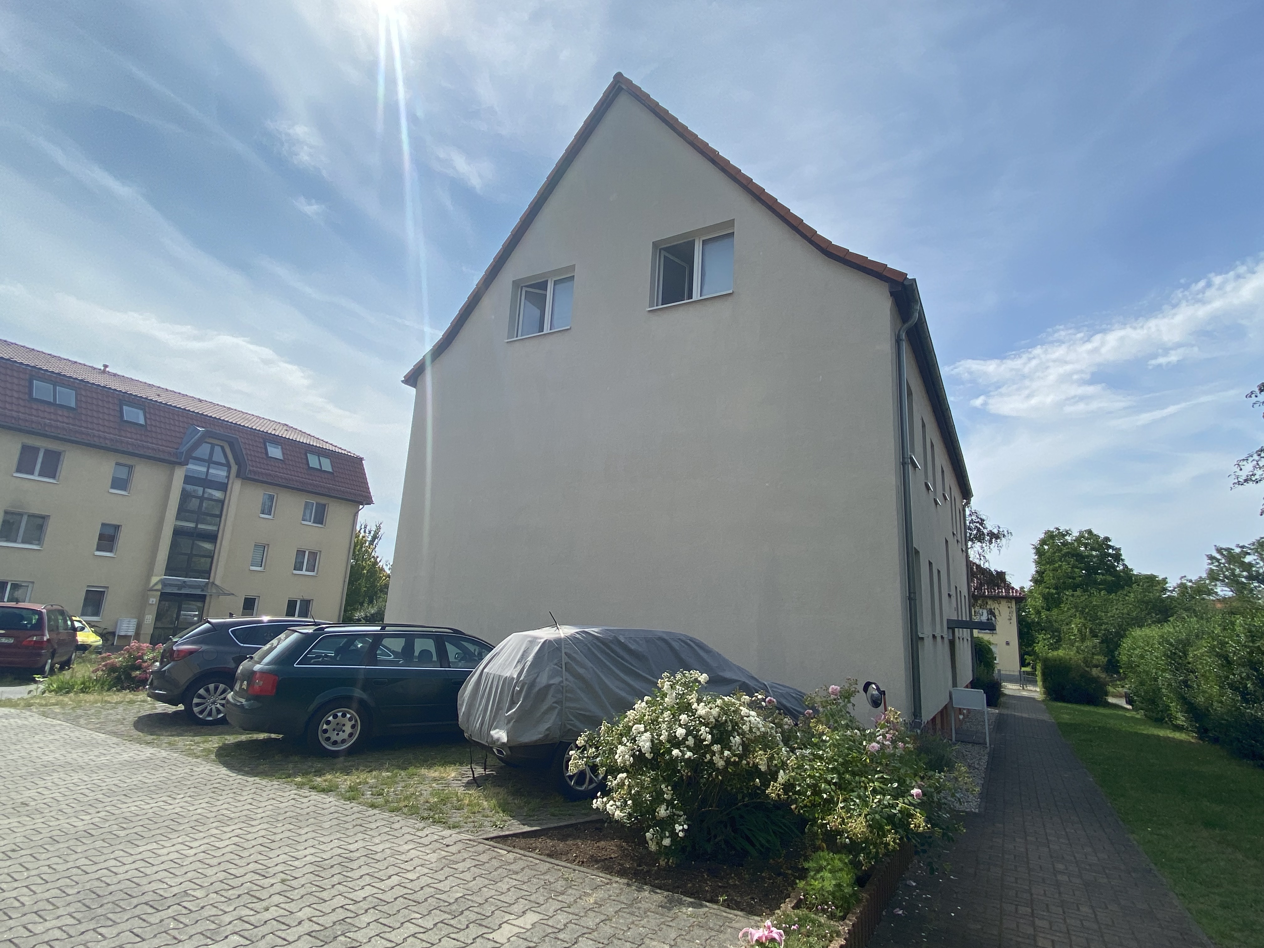 Zu der Wohnung gehört ein Stellplatz direkt neben dem Wohnhaus.
