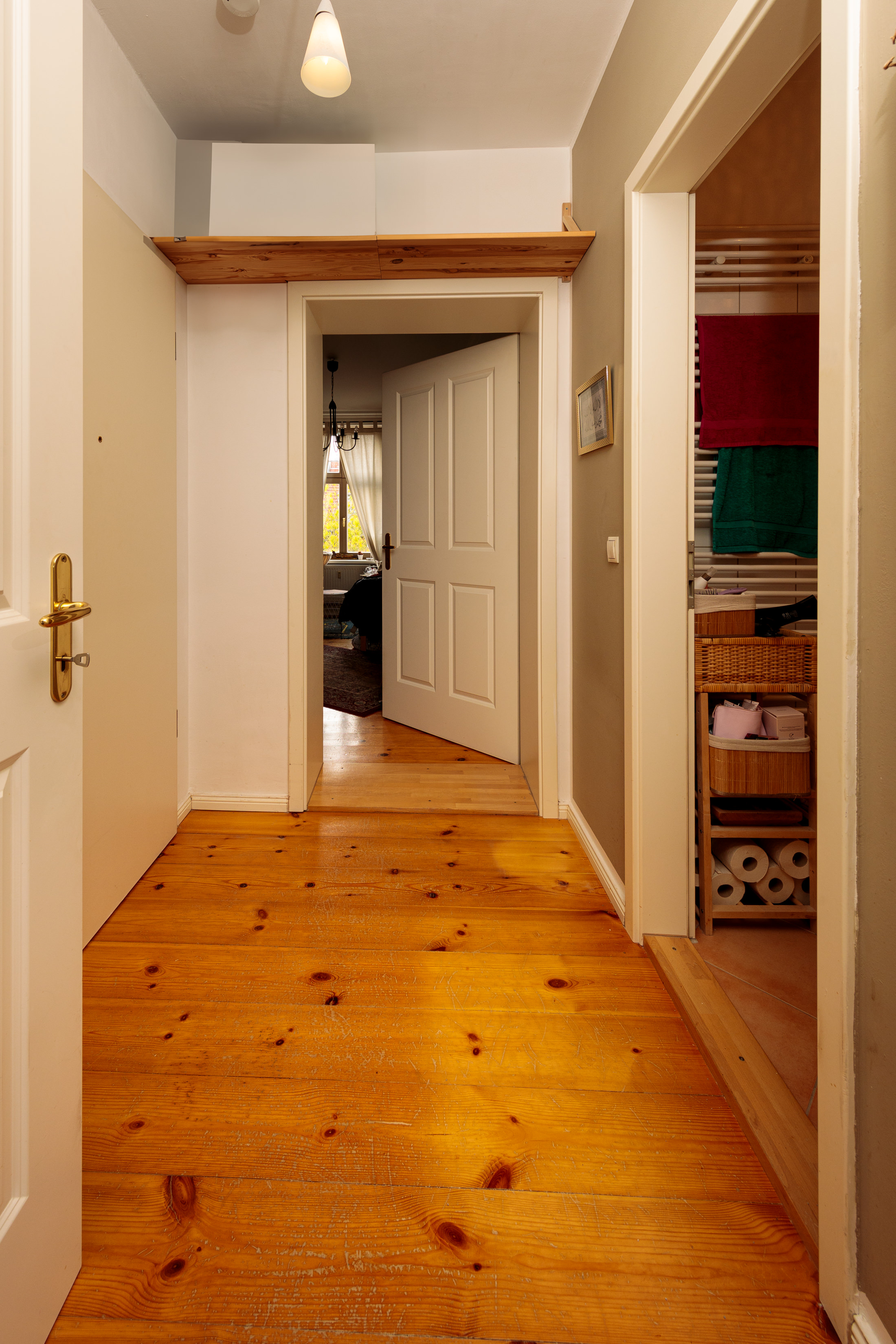 - Original aufgearbeiteter Dielenboden im Flur und in den Wohnräumen.