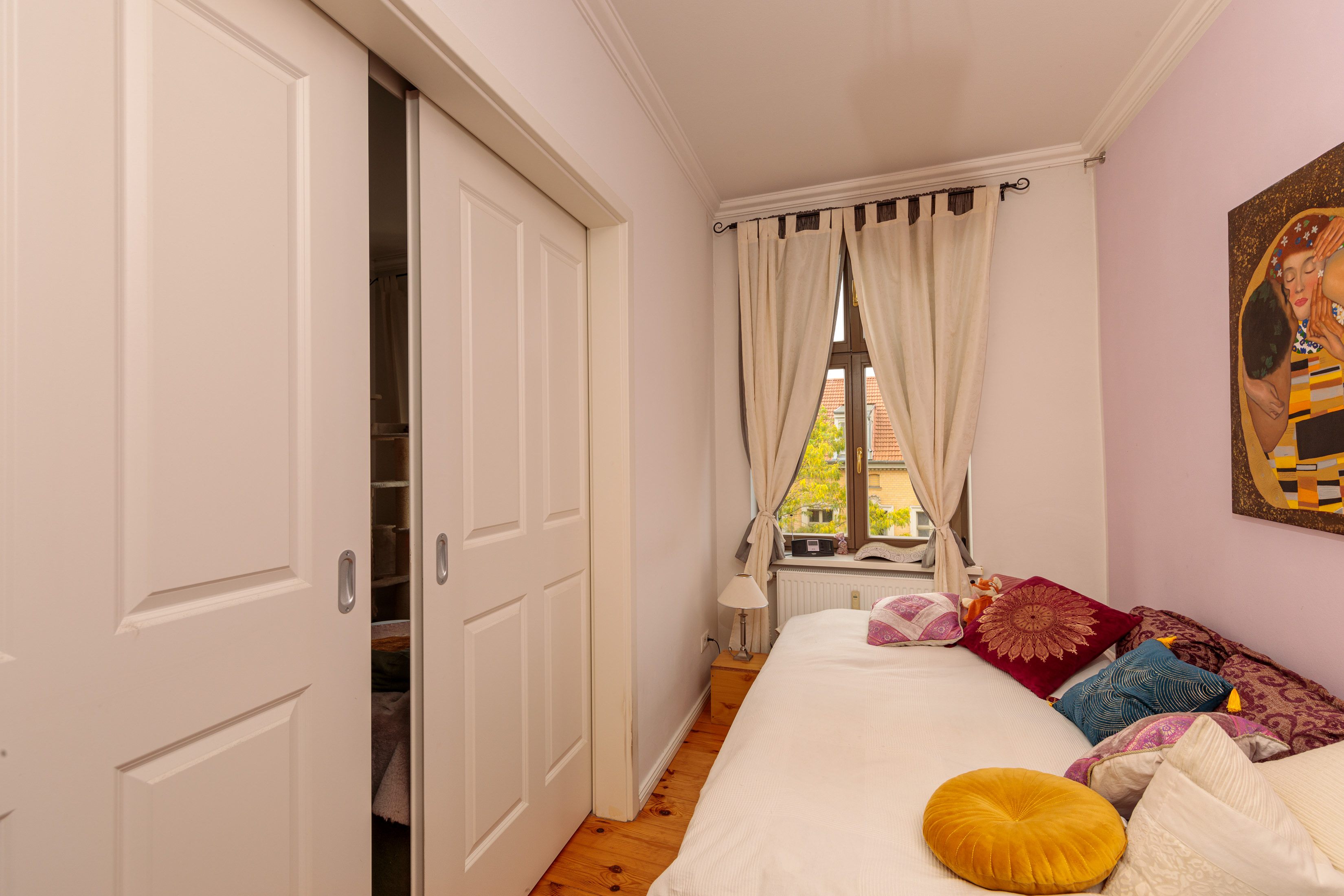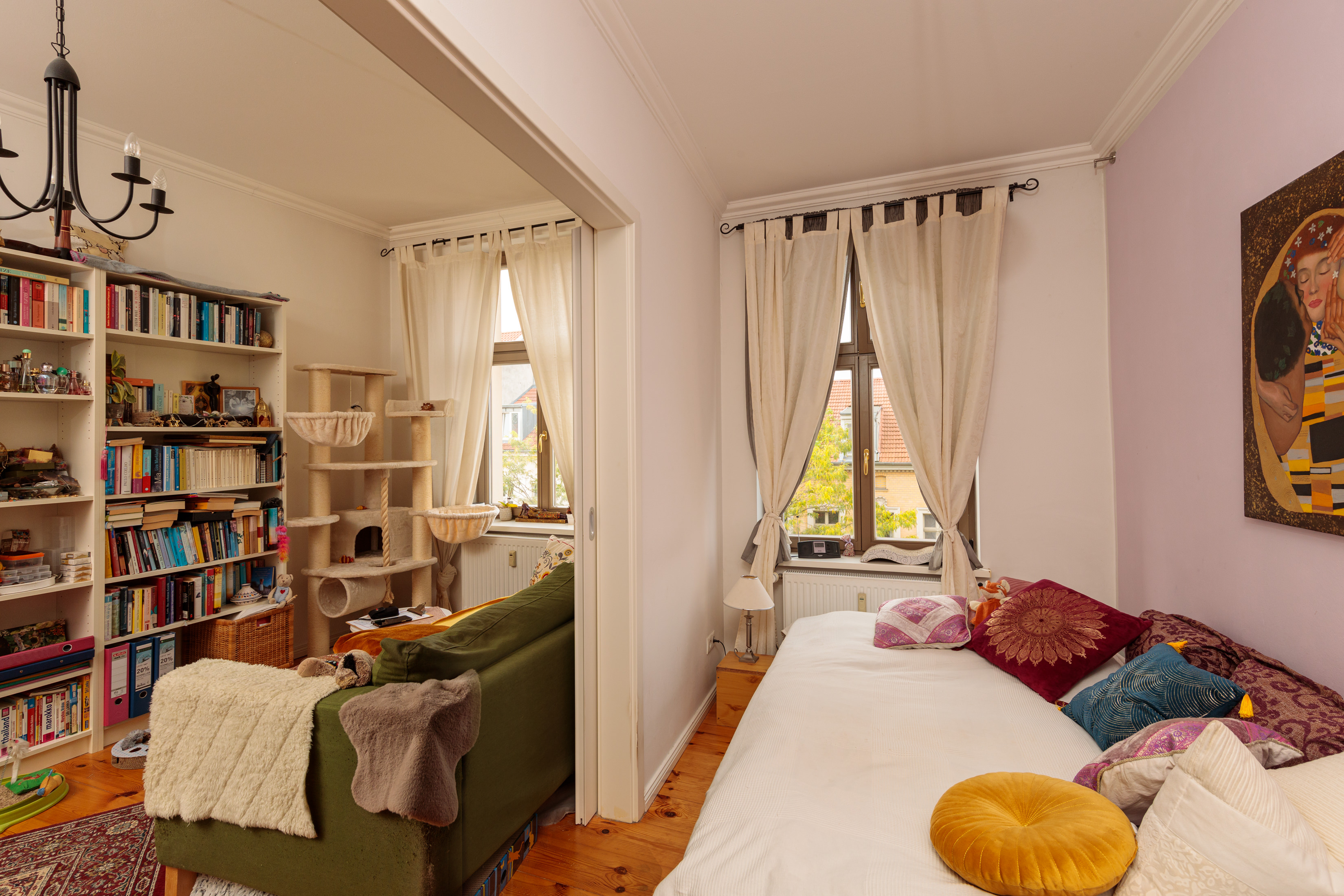 - Flexible Raumgestaltung durch große Schiebetür zwischen den Zimmern.