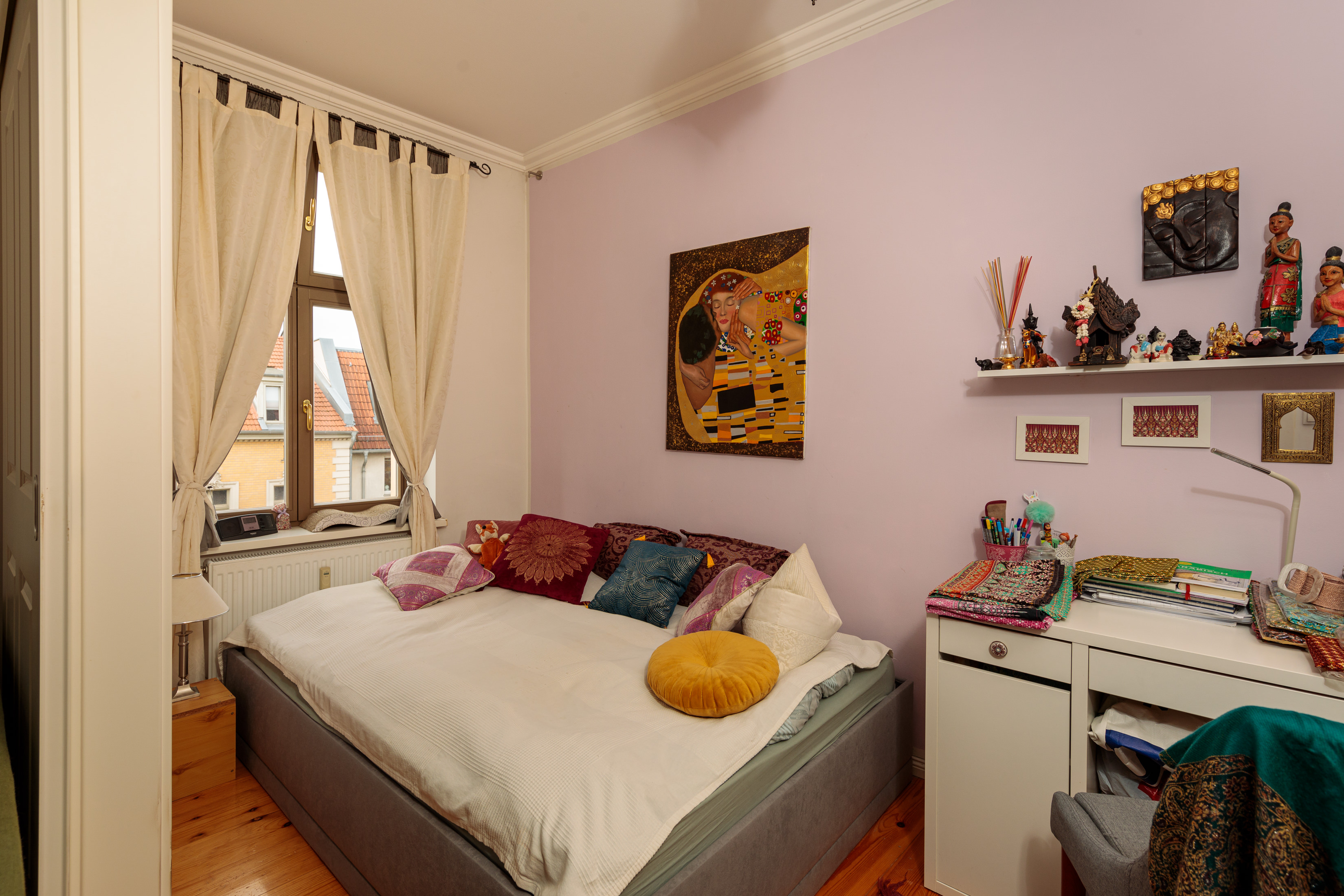 - Das Schlafzimmer bietet Platz für ein Bett sowie eine praktische Schranknische. Aktuell findet sogar ein Schreibtisch seinen Platz.