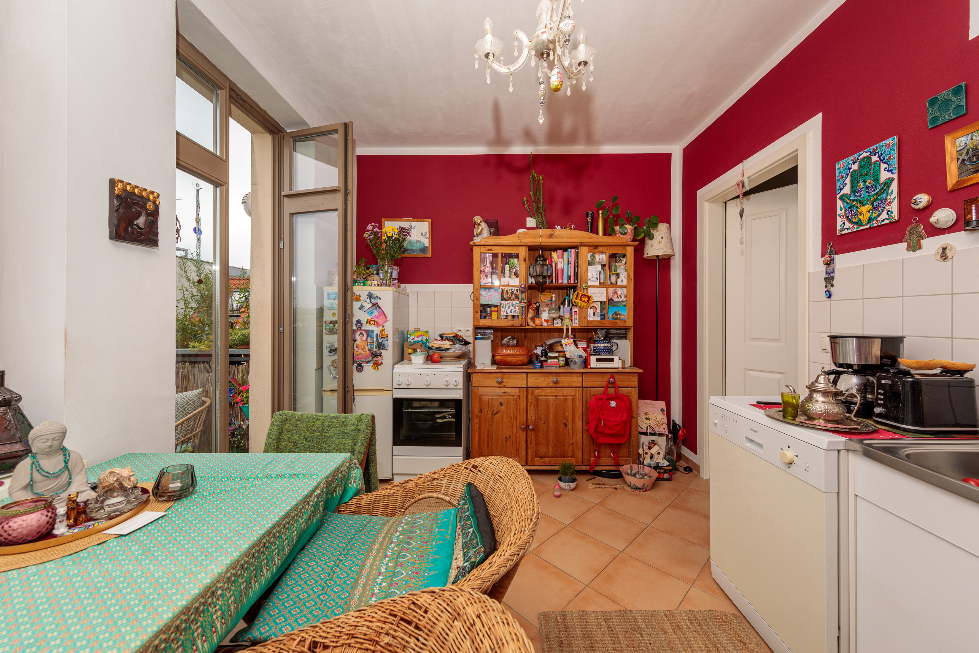 - Fliesenboden in der Küche und im Bad.