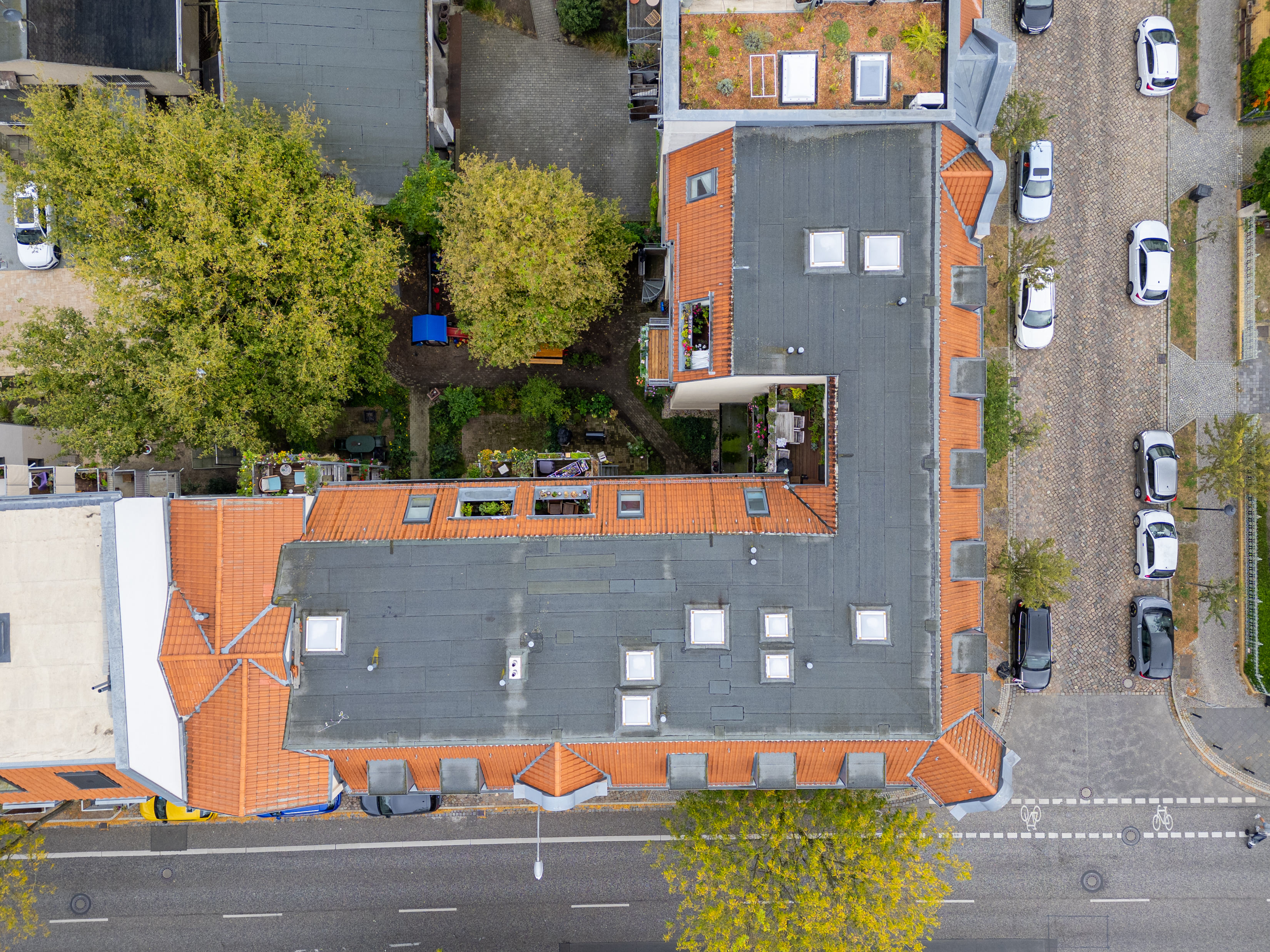 Das Wohnhaus, bestehend aus mehreren Einheiten, verfügt über zwei Hauseingänge und einen liebevoll gestalteten, grünen Innenhof, der das Haus zu einem echten Juwel macht. Die gewachsene Hausgemeinschaft und die familiäre Atmosphäre tragen zur hohen Wohnqualität bei.
