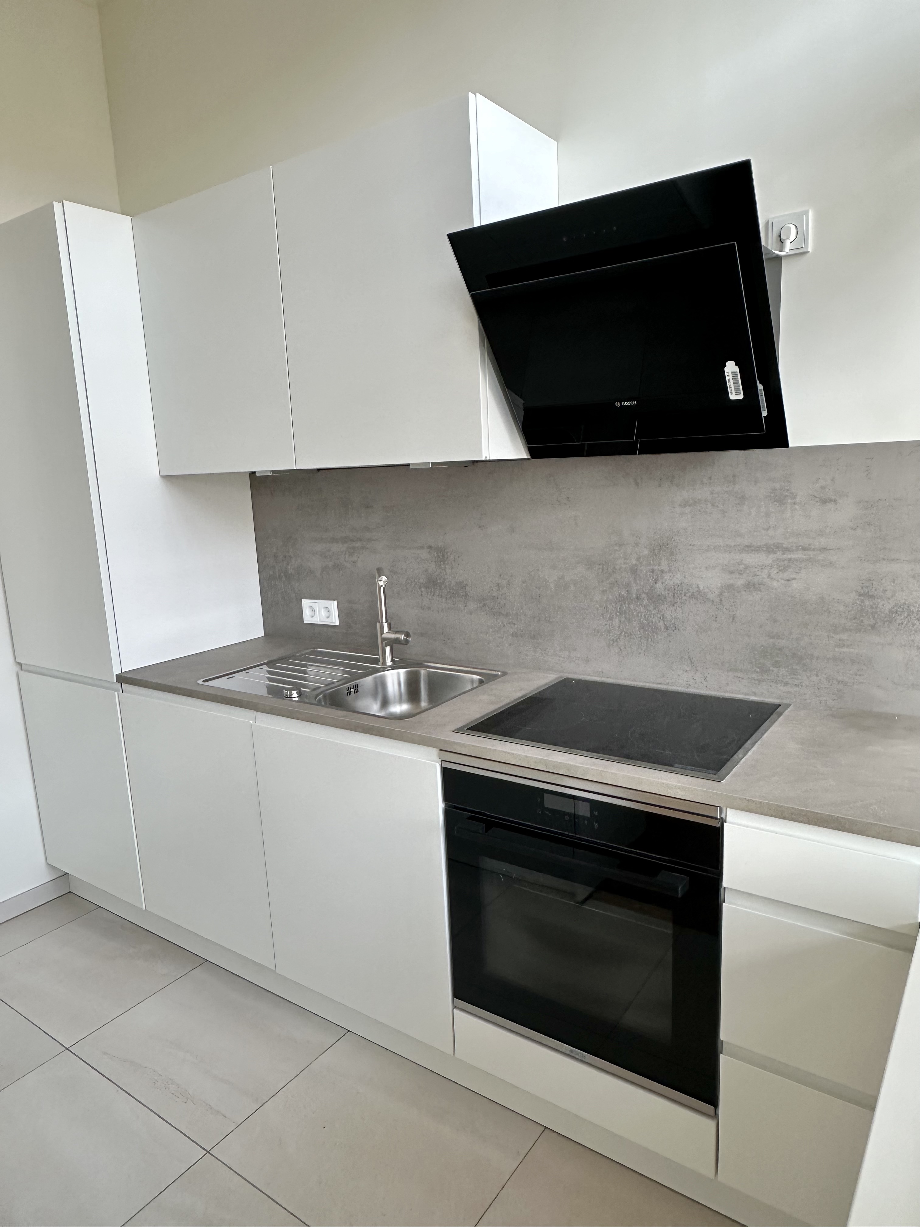 - Moderne offene Einbauküche mit Einbaugeräten der Marke Bosch.
