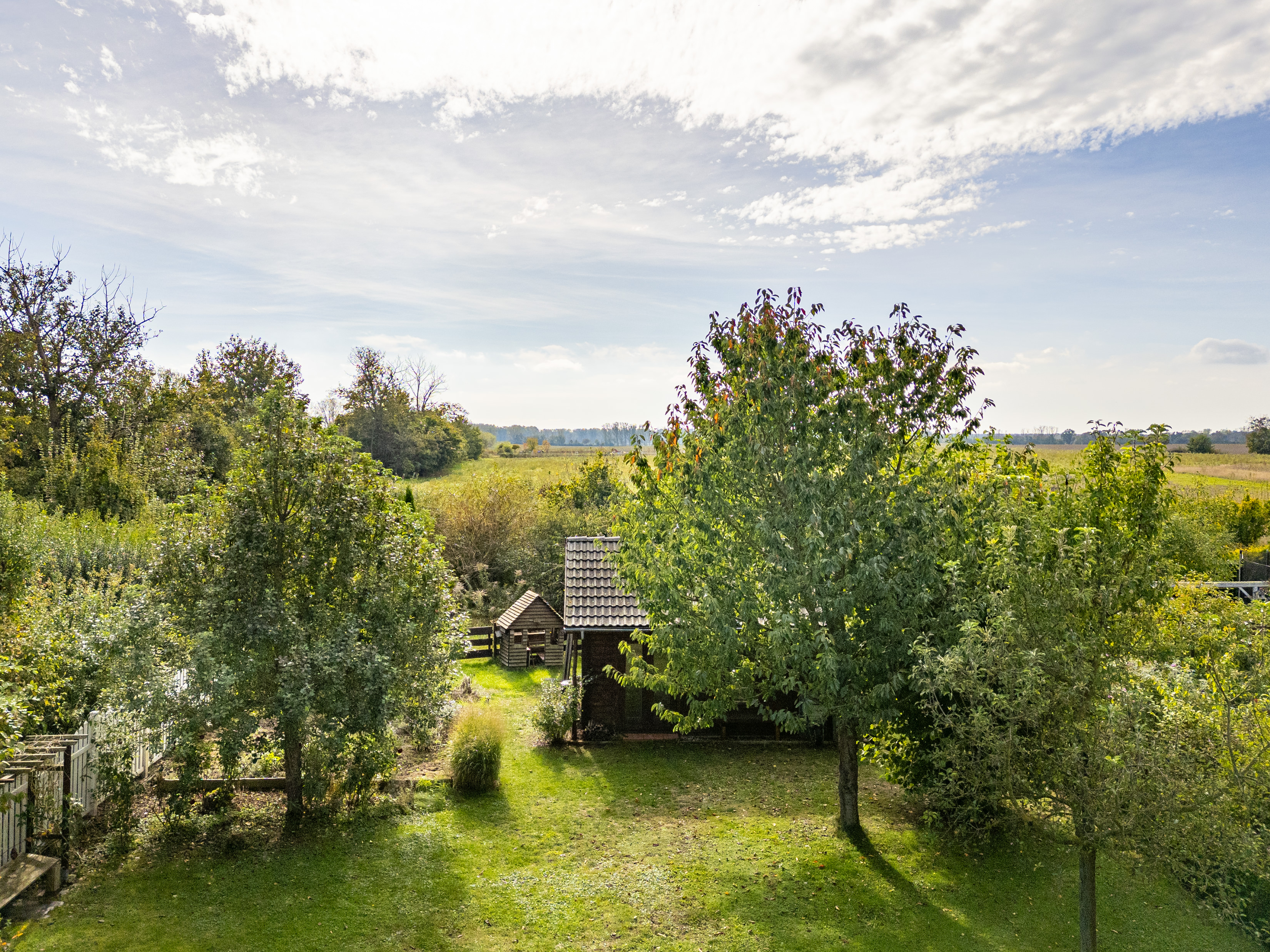 Ein weiteres Highlight im Garten ist das Kinderspielhaus, das für den Nachwuchs ein perfekter Rückzugsort zum Spielen und Entdecken ist. Zudem bietet der Zugang zu den angrenzenden Feldern und Wiesen eine unvergleichliche Möglichkeit, die Natur direkt vor der Haustür zu genießen.