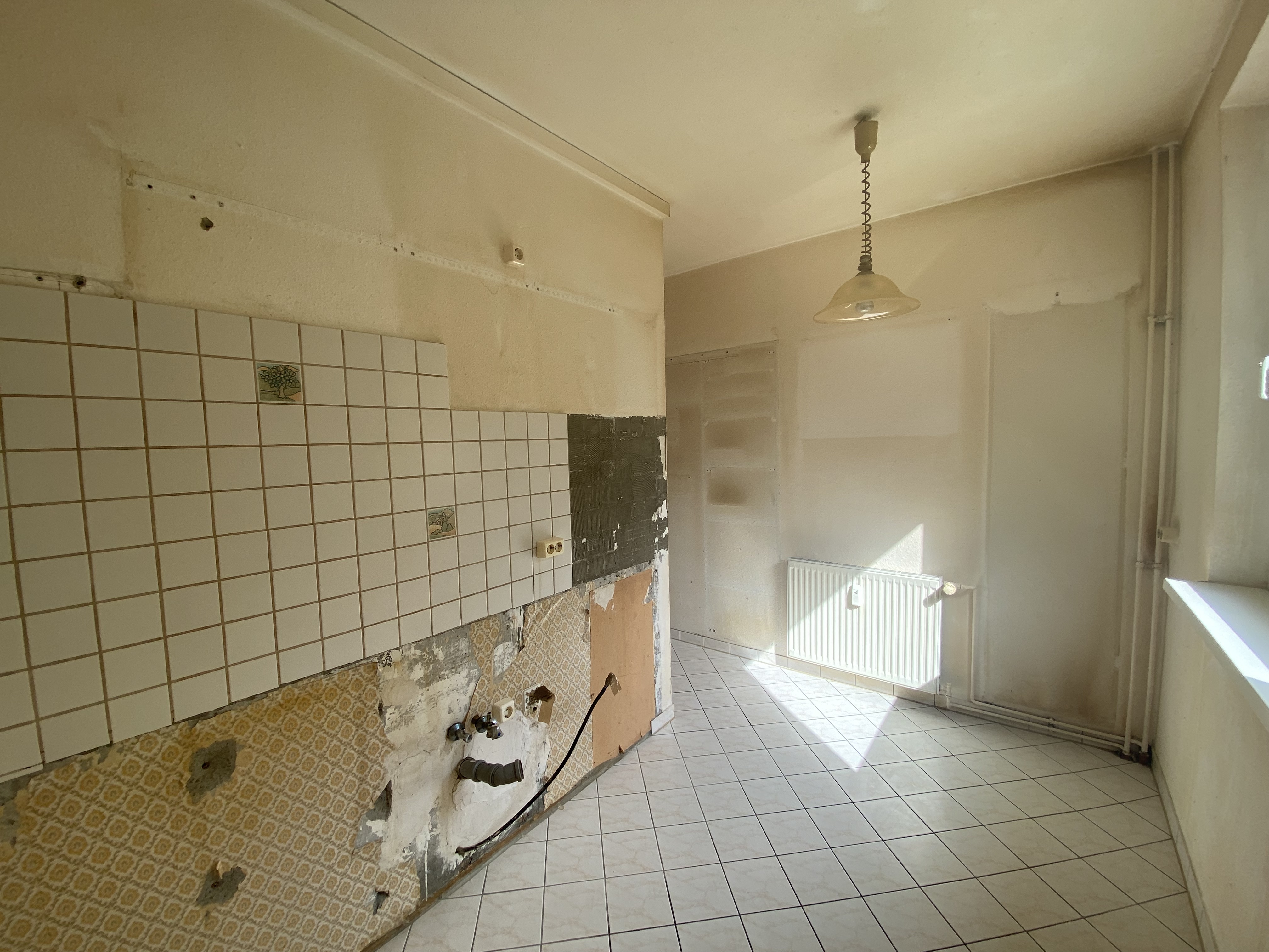 - Fliesenboden in Küche, Bad und Flur.