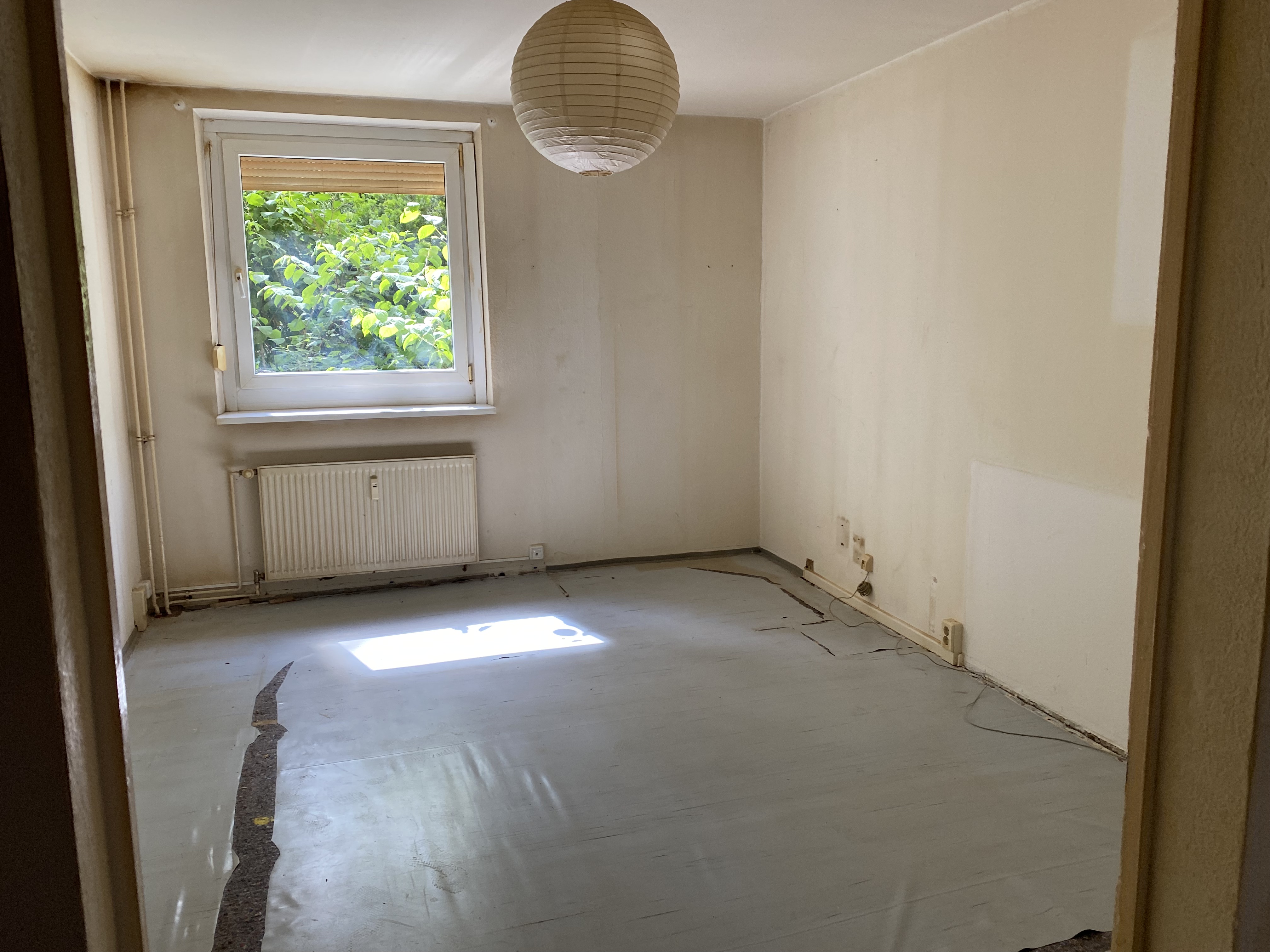 Der Bodenoberbelag in den Wohn- und Schlafräumen wurde bereits entfernt, die Trittschalldämmung ist vorhanden. Ein schöner, moderner Vinyl- oder Laminatboden und malermäßige Überarbeitung der Wände kann in den Räumen eine modere Wohnatmosphäre entstehen lassen. Eine Sanierung des Bades und der Küche wird den Wohnwert erhöhen.