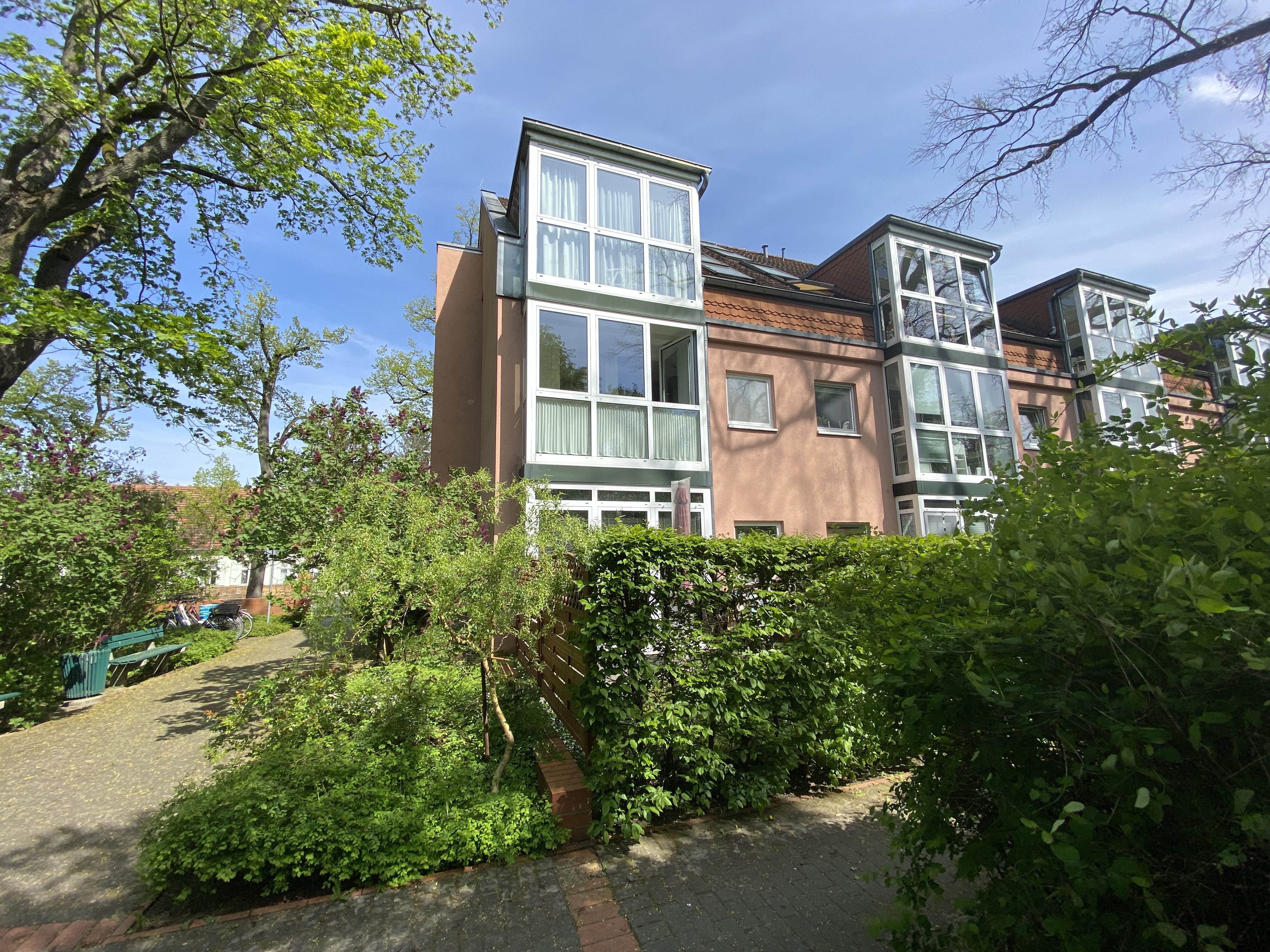 Die Wohnanlage besteht aus insgesamt 36 Einheiten verteilt auf 2 Gebäude und wurde im Jahr 1997 in Massivbauweise errichtet. Insgesamt verteilen sich die Wohnungen auf 3 Geschosse und bieten mit insgesamt 4.256 m2 Grundstücksfläche ein weitläufiges Areal, welches auch mit Sitzbänken und zahlreichen Bäumen, Sträuchern und Hecken ausgestattet ist, sodass Mieter und Bewohner sich mit einem beruhigenden Grünblick erholen können. Auf dem Grundstück befinden sich ebenfalls die Stellplätze aller Bewohner.
