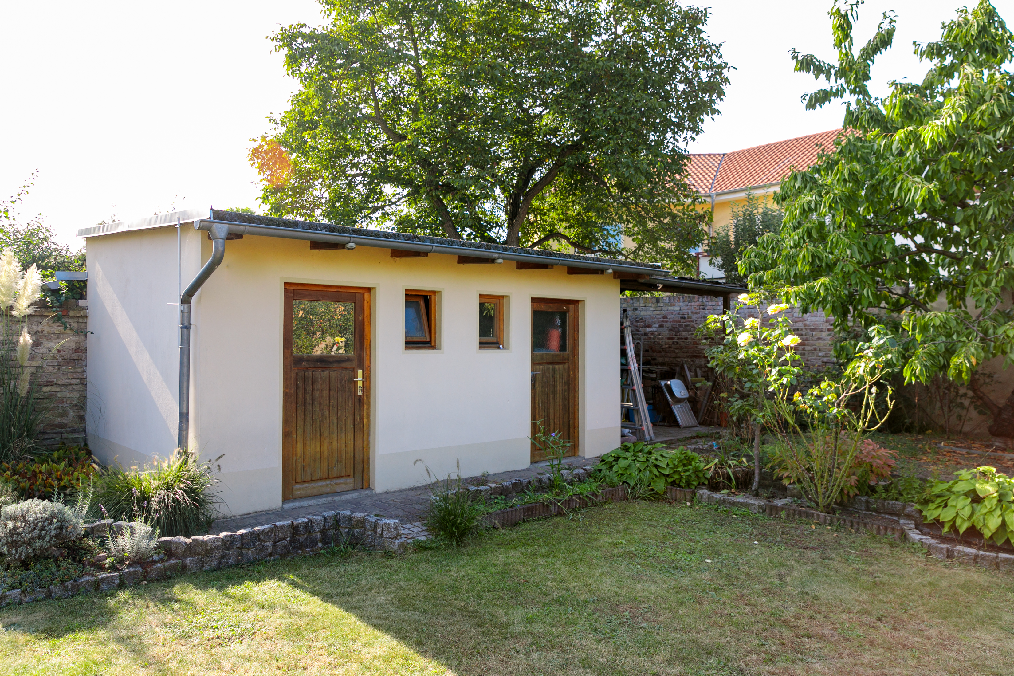 Der Garten ist eine Mischung aus Erholungsgarten und Nutzgarten. Das Nebengebäude wurde 2005 massiv errichtet. Die Terrasse hat eine solide Überdachung, die im Jahr 2012 gebaut wurde.