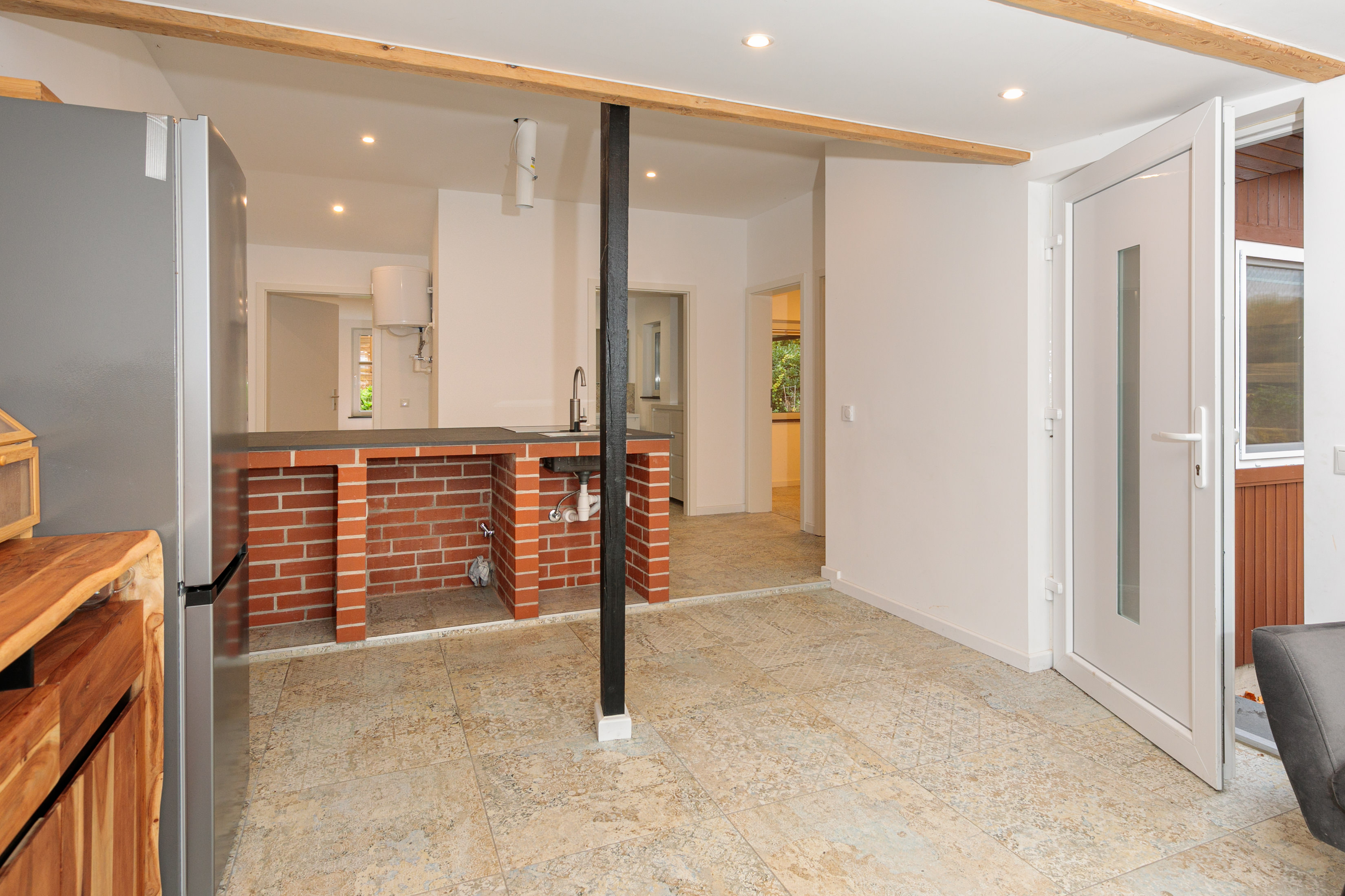 Der zweite Bungalow wurde in den 70er Jahren erbaut. Er verfügt über eine Nutzfläche von ca. 65,74 m² und ist gerade umfassend modernisiert worden. Die hellen, verputzten und gestrichenen Wände sowie die modernen großformatigen Fliesen verleihen dem Innenraum eine einladende und zeitgemäße Atmosphäre.