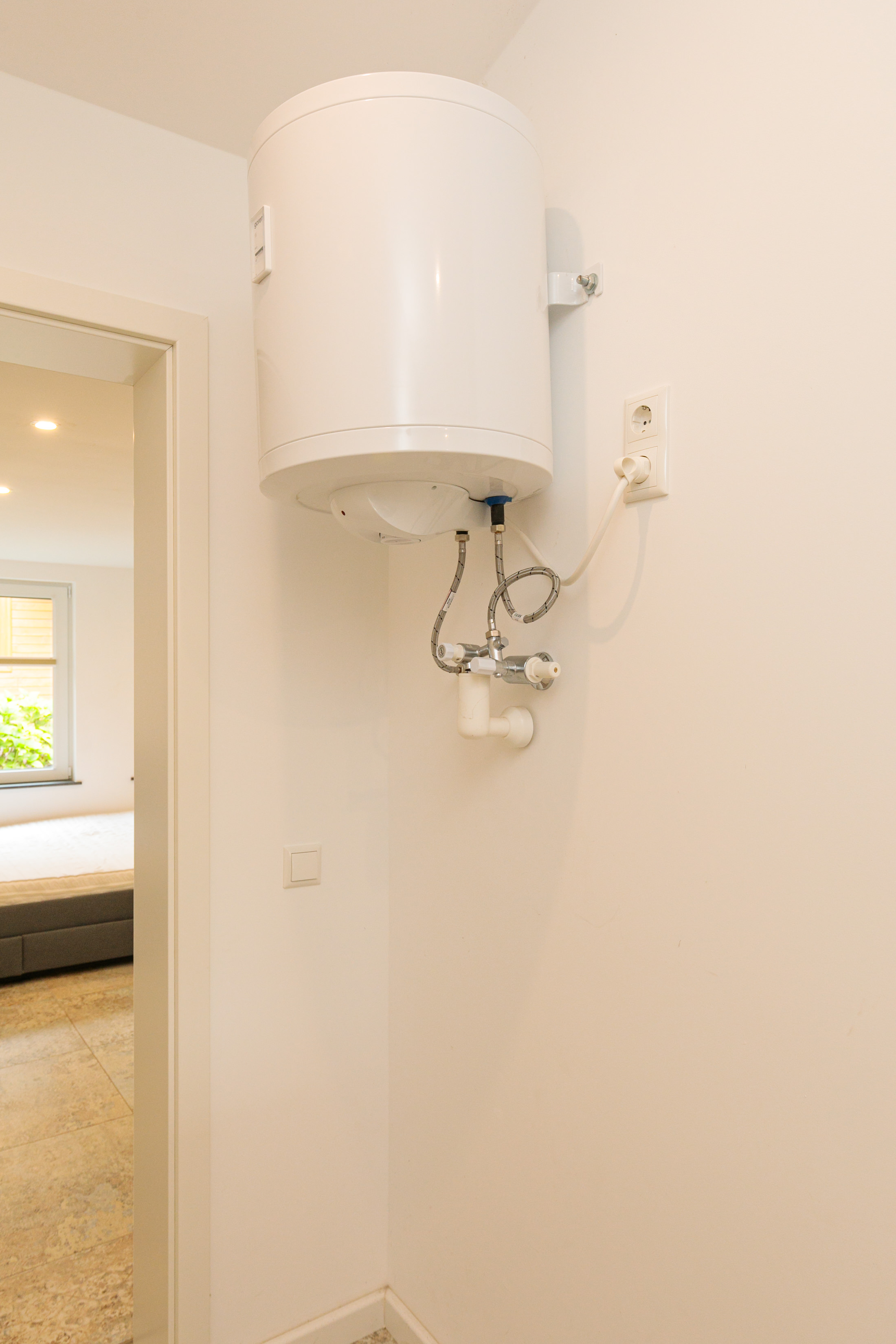 - Warmwassererzeugung mit modernem Warmwasserboiler über Strom.