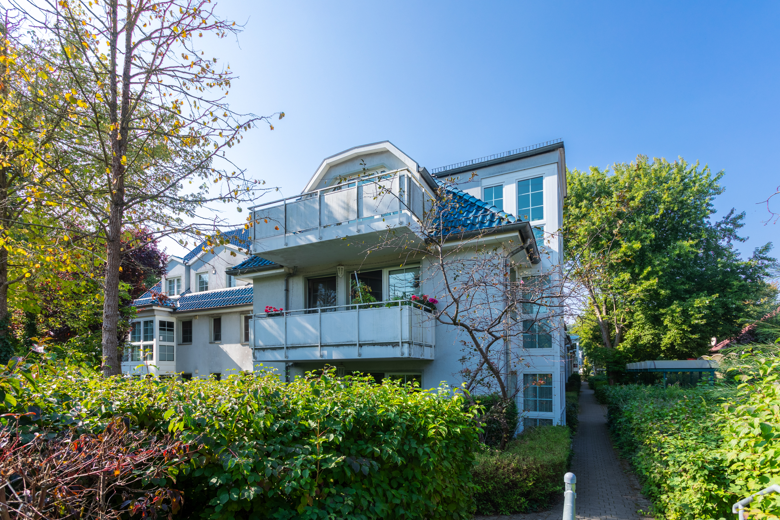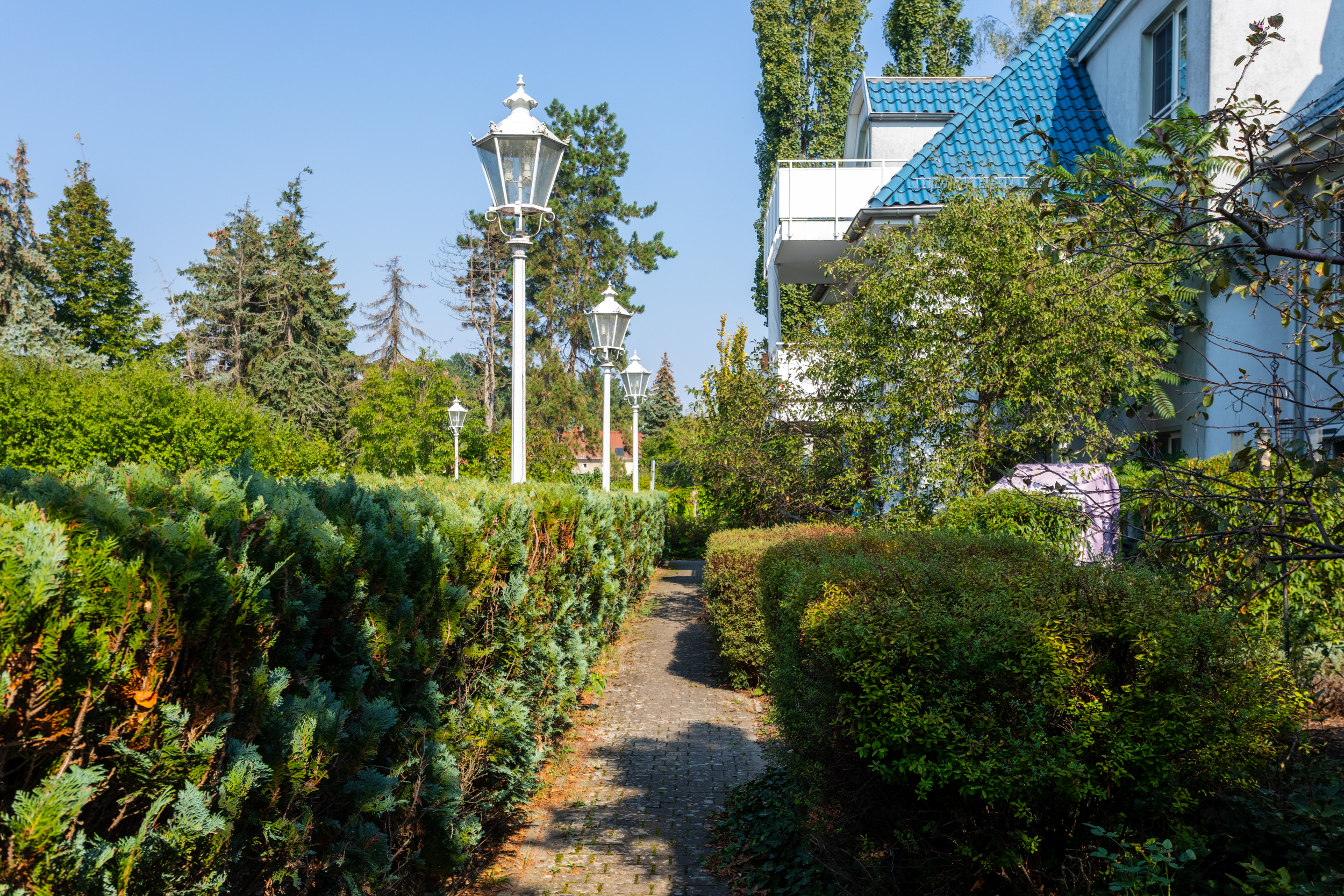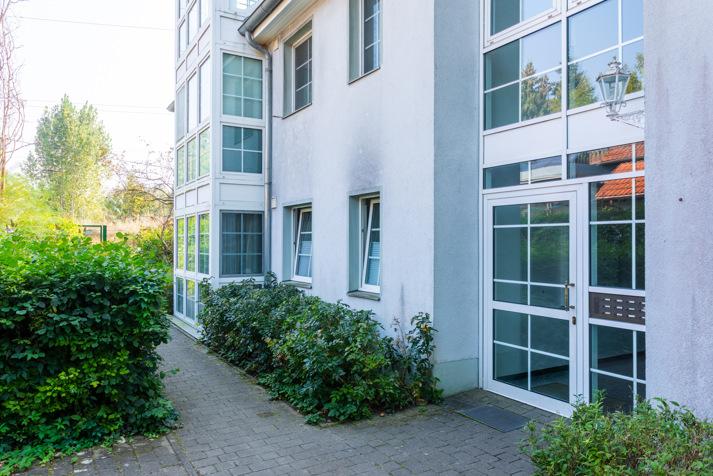 - Gepflegte Außenanlagen mit gepflasterten Wegen.
