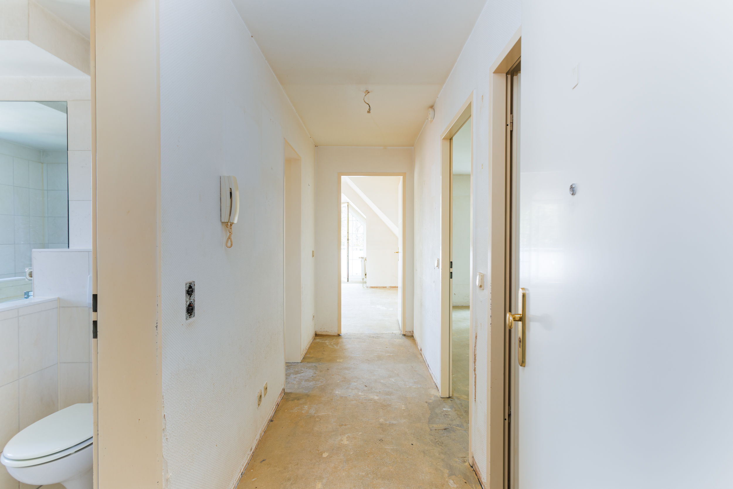 - Estrichboden in den Wohnräumen, in der Abstellkammer und im Flur.