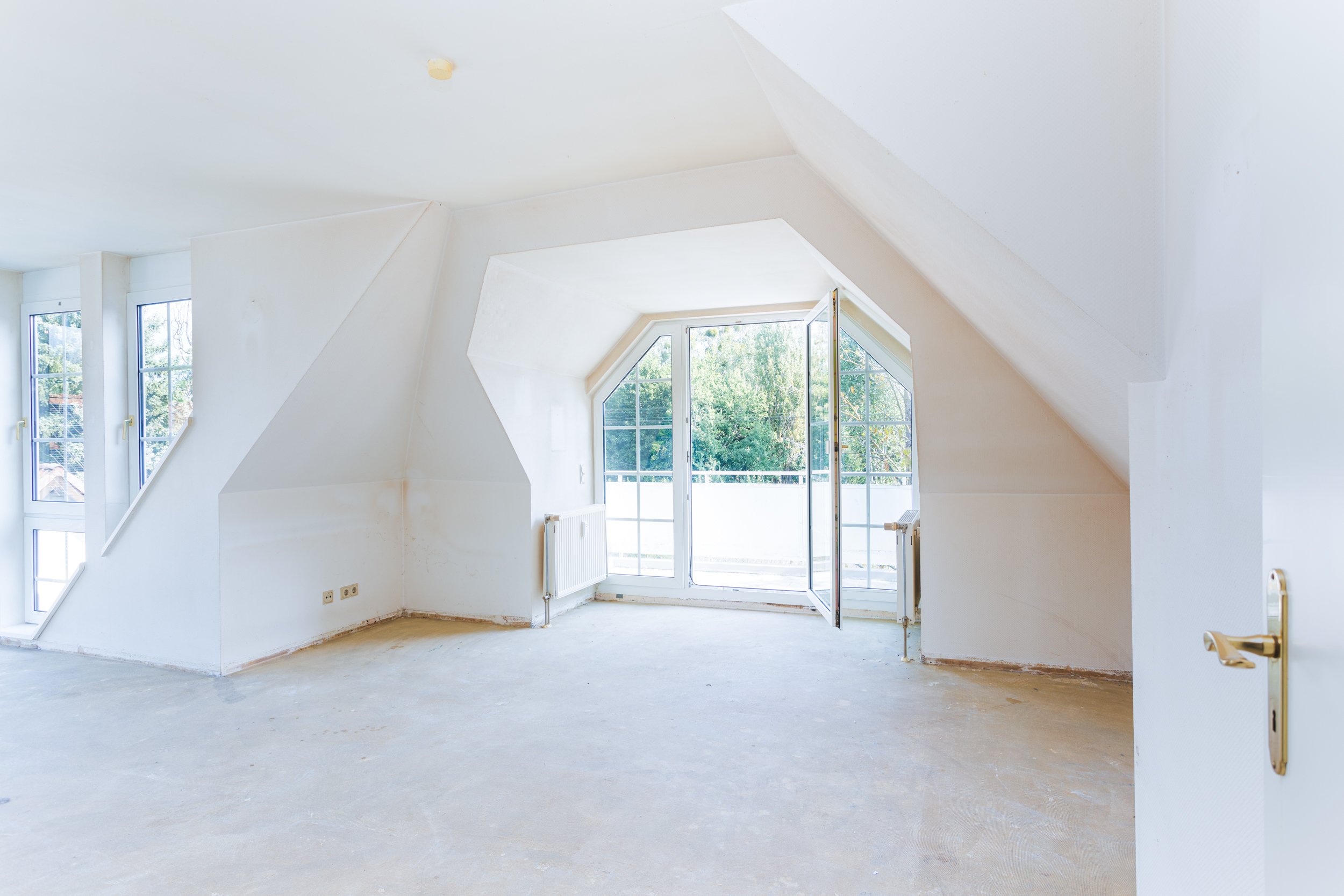 - Wohnzimmer: Das lichtdurchflutete Wohnzimmer verfügt über eine große Fläche bodentiefer Fenster, die viel Tageslicht hereinlassen. Es bietet ausreichend Platz für eine gemütliche Couch-Ecke sowie einen Essbereich. Durch die großen Gauben wirkt der Raum optisch ansprechend. Vom Wohnzimmer aus gelangen Sie auf den Balkon mit einem Blick ins Grüne. Die Abdichtung des Balkons wird demnächst aus der Instandhaltungsrücklage erneuert (Termin wird noch festgelegt).