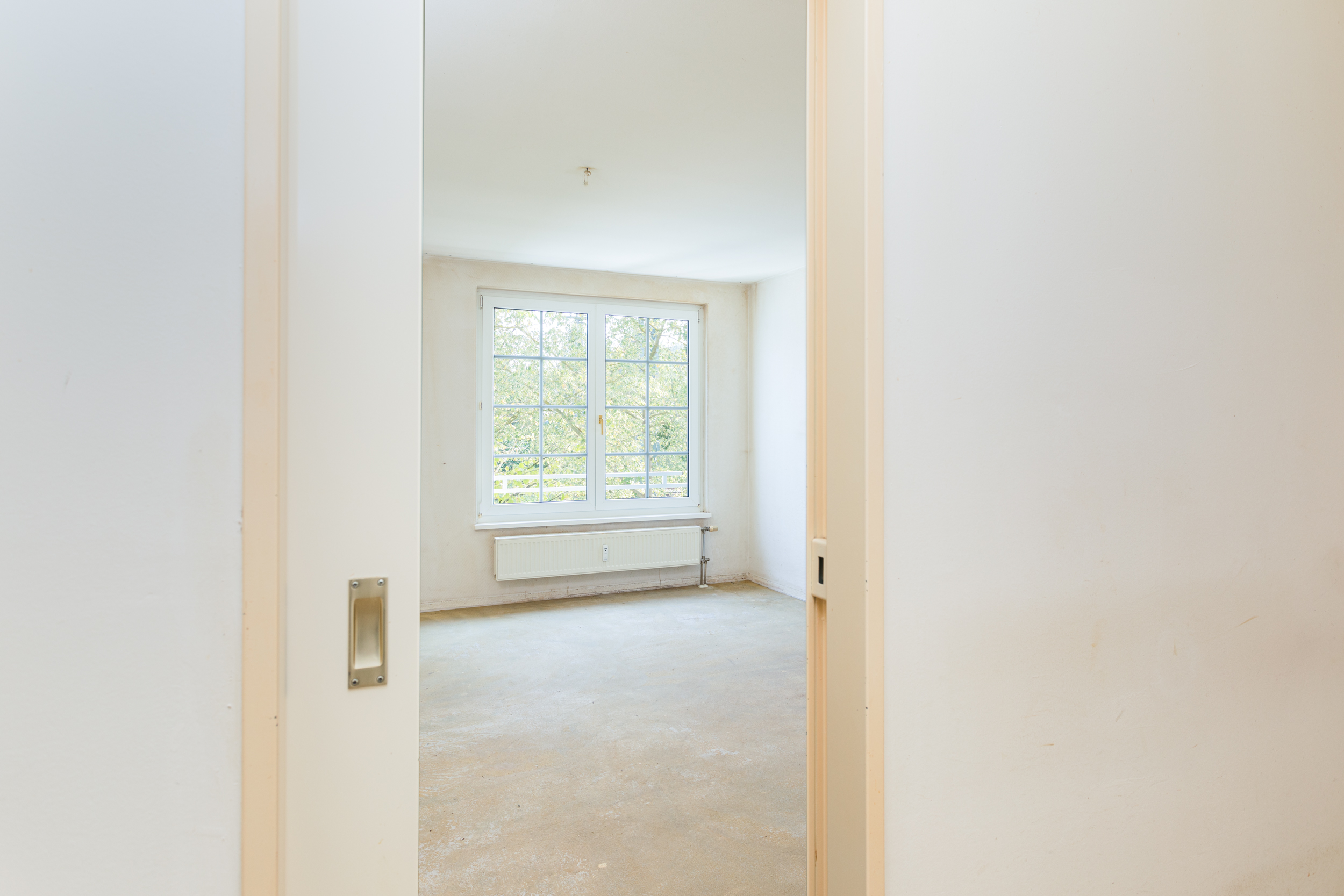 - Schlafzimmer: Das Schlafzimmer bietet ebenfalls einen schönen Blick ins Grüne und ausreichend Platz für ein Bett, Schränke oder eine Home-Office-Ecke. Der vorhandene Schrank könnte in die angrenzende Abstellkammer integriert werden, da diese sowohl vom Schlafzimmer als auch vom Flur aus zugänglich ist.