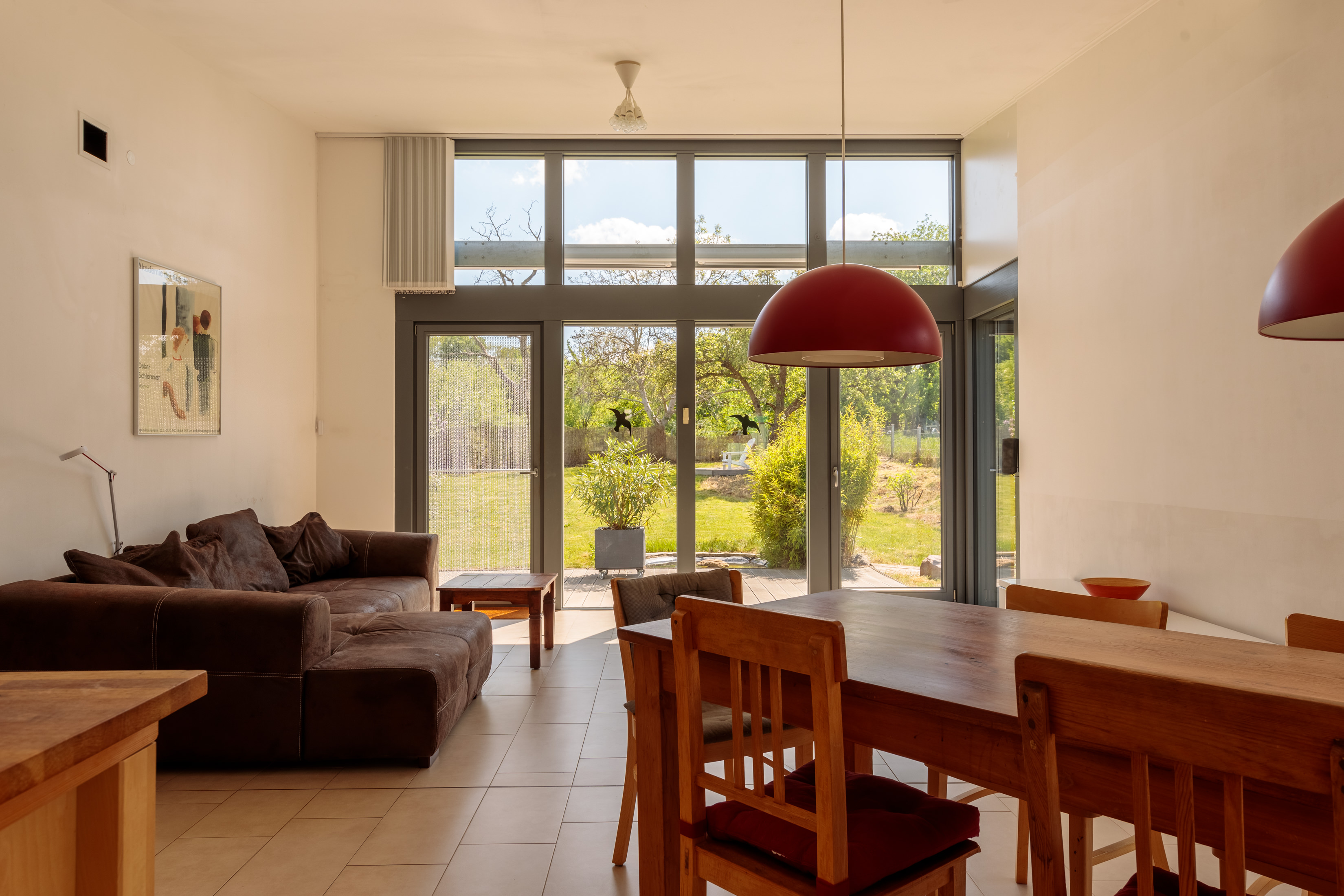 - Bodentiefe und deckenhohe Fenster in Wohnbereich und -küche.