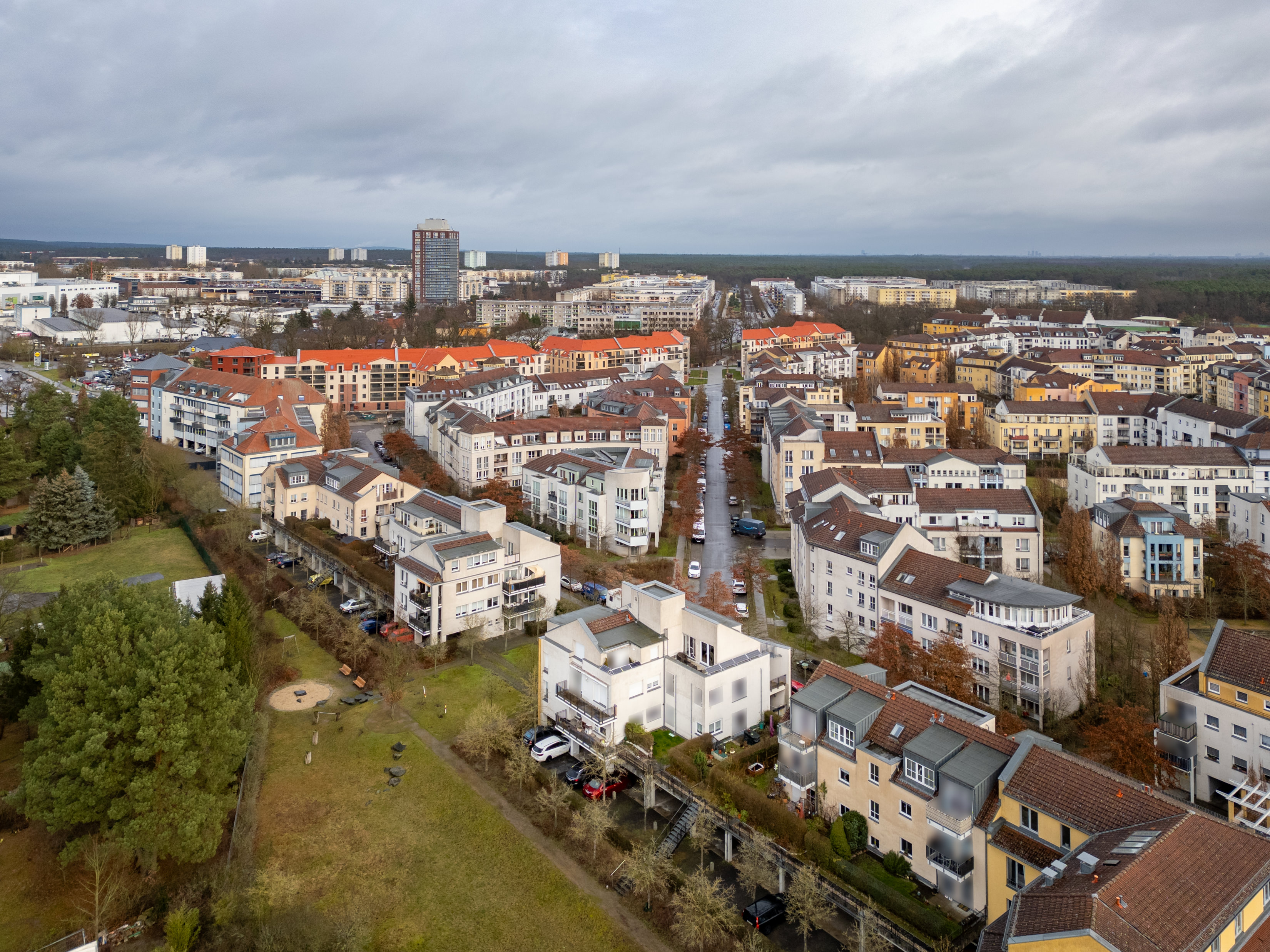 Einkaufsmöglichkeiten für den täglichen Bedarf sind fußläufig erreichbar. Ergänzt wird das Angebot durch medizinische Einrichtungen, Apotheken und gastronomische Betriebe. Naturnahe Erholungsmöglichkeiten, wie der nahegelegene Waldpark oder der Nuthepark, laden zu Spaziergängen und sportlichen Aktivitäten ein.