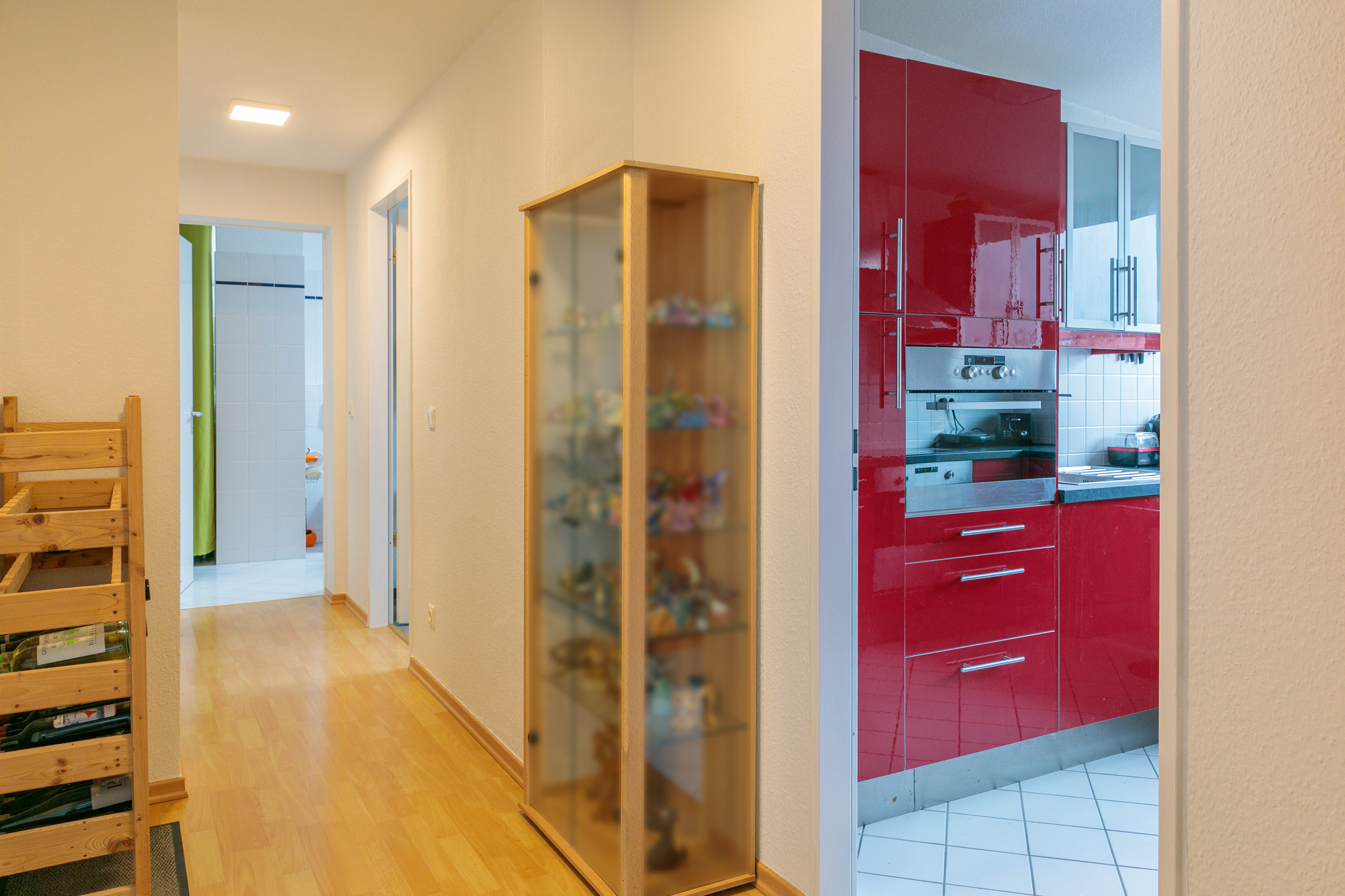 Beim Betreten der Wohnung empfängt Sie ein großzügiger Flur, der ausreichend Platz für eine Garderobe bietet. Eine moderne Gegensprechanlage sorgt für zusätzliche Sicherheit und Komfort.