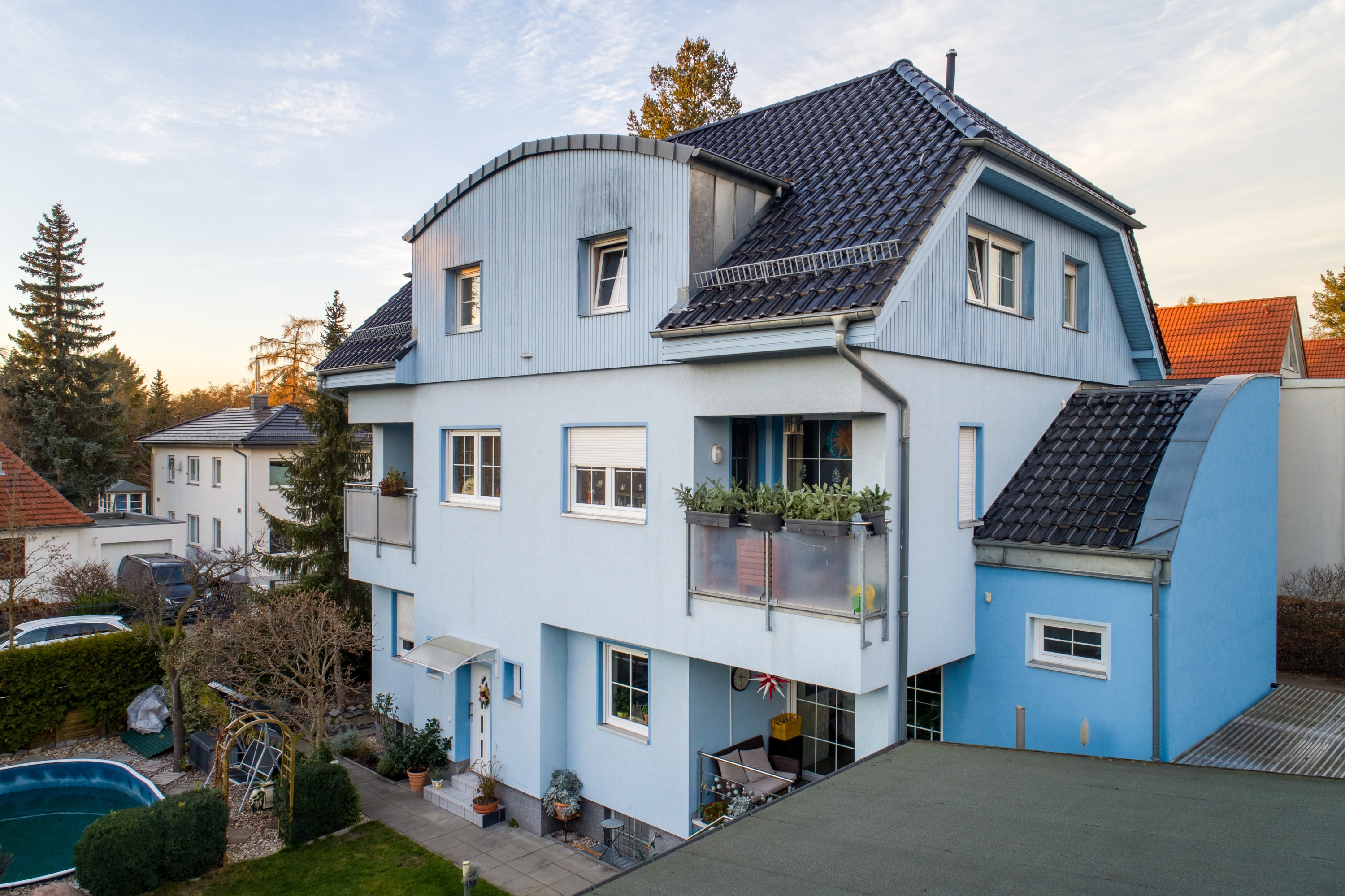Die 140 m² große Wohnung im Erdgeschoss/Souterrain bietet ausreichend Wohn- und Bürofläche für eine mehrköpfige Familie und der Garten mit Außenpool einen starken Freizeitwert. Die übrigen drei Wohnungen können anderweitig vermietet werden, um das Darlehen zu tilgen. Später dient das abbezahlte Haus mit seinen Mieteinnahmen für (Zusatz-) Einkünfte im Alter.