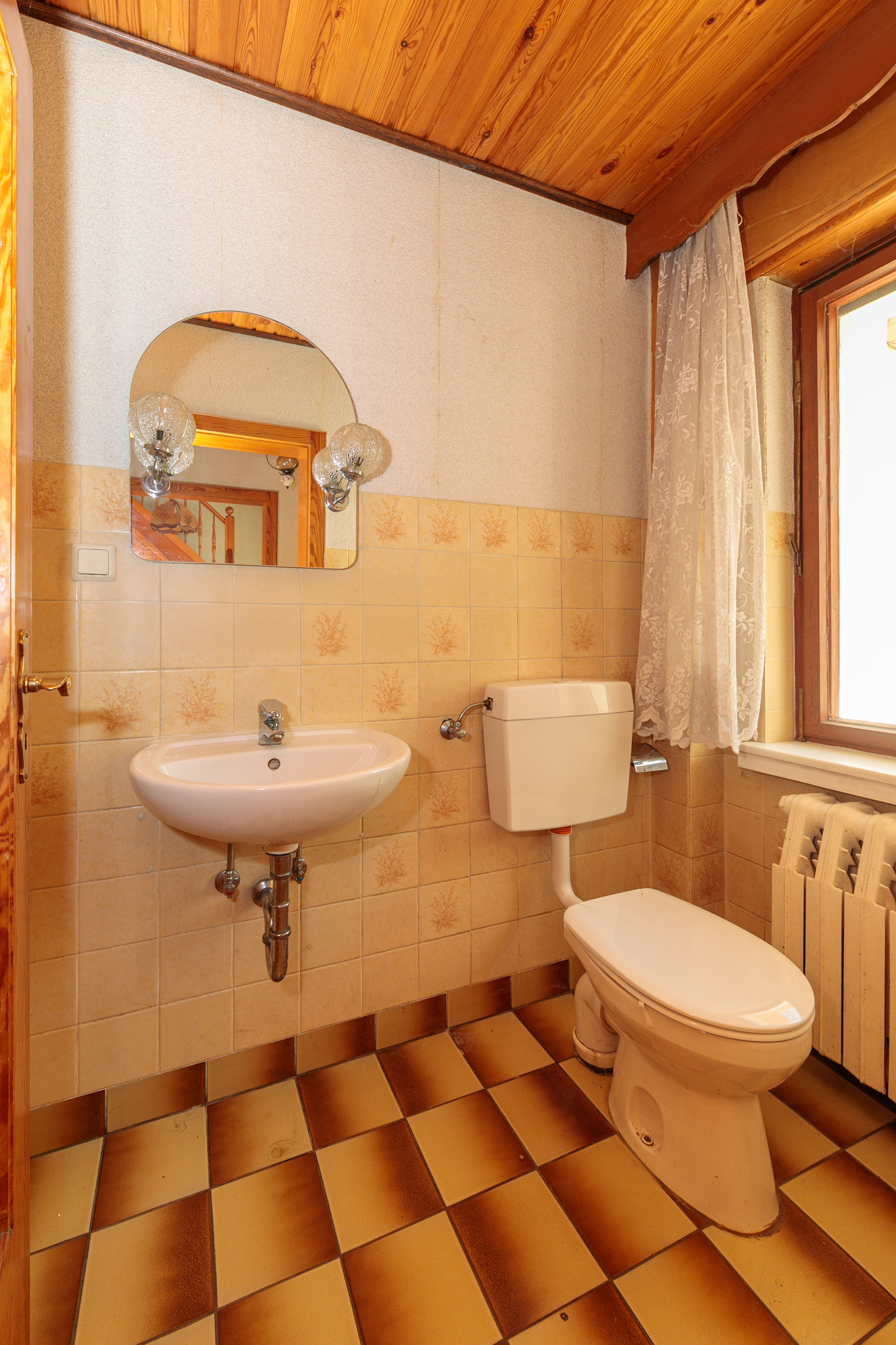 - Gäste-WC halbhoch gefliest.