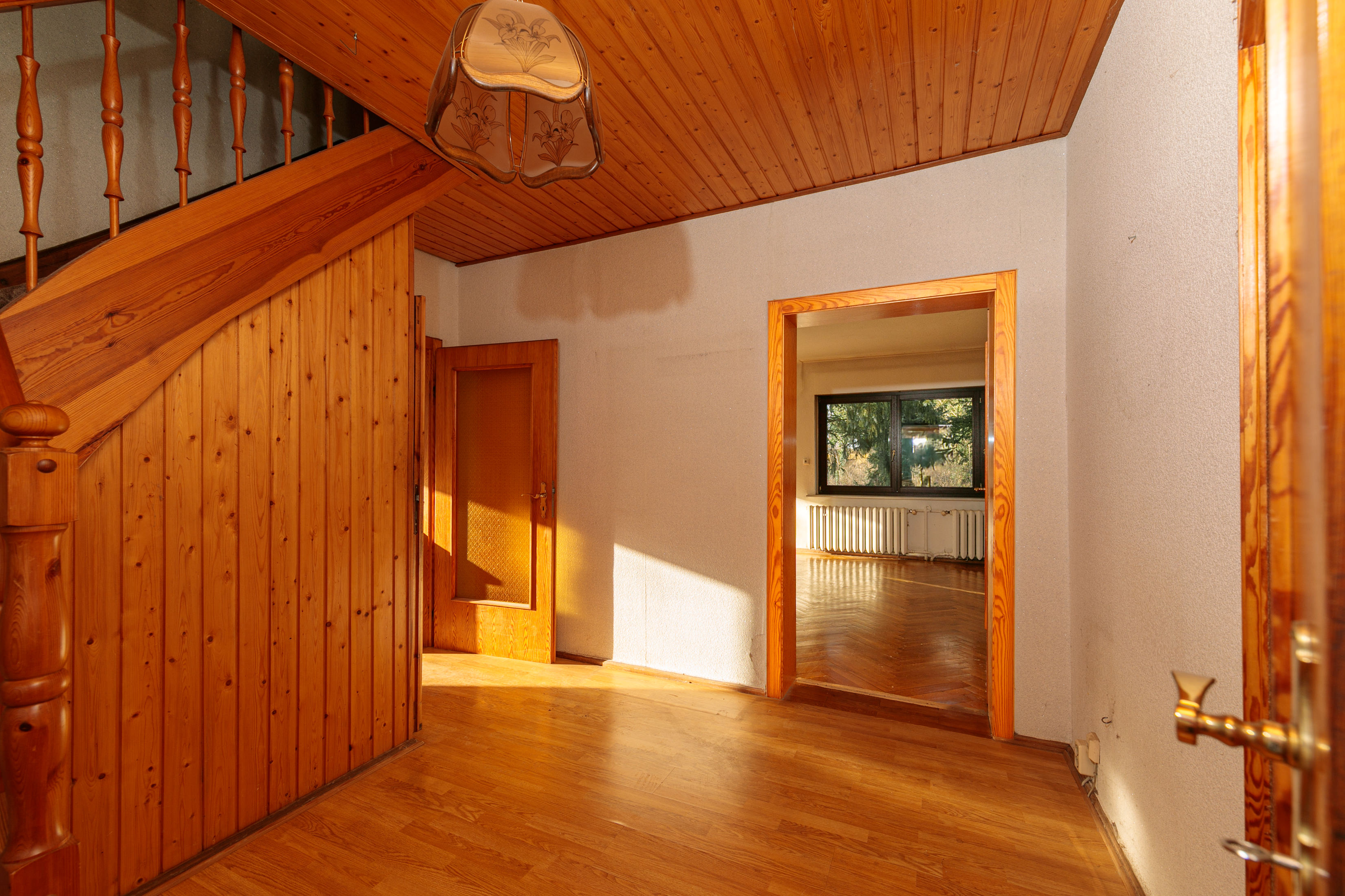 - Parkett unter dem Laminat im Erdgeschossflur.