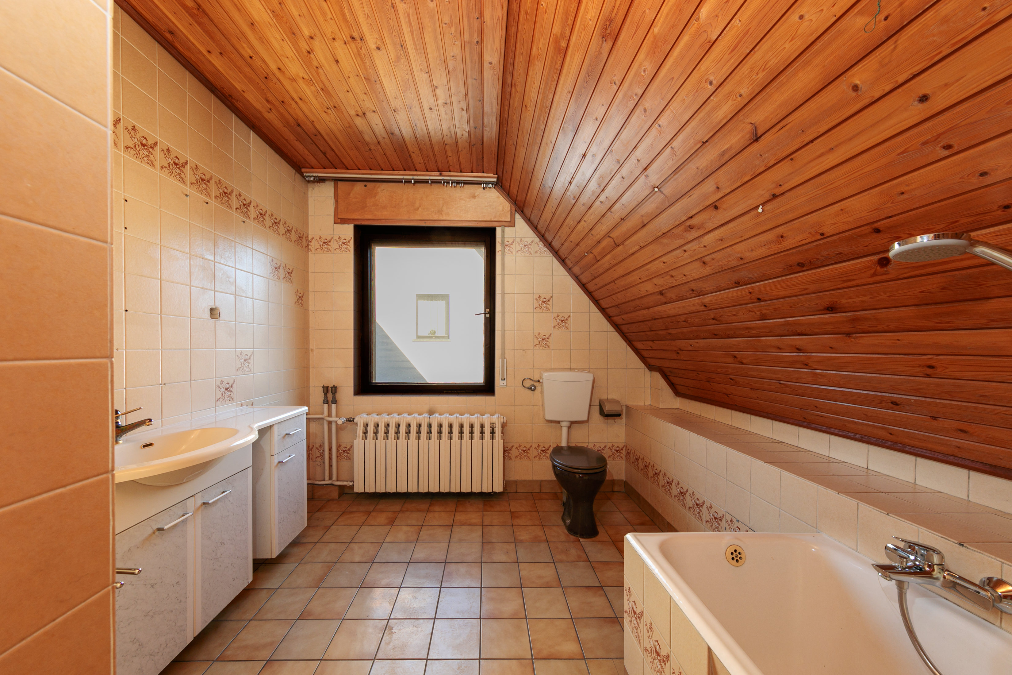 Das großzügige Badezimmer mit separater Dusche und Badewanne bietet vielseitige Gestaltungsmöglichkeiten, um ein modernes und komfortables Bad zu schaffen.